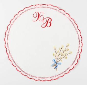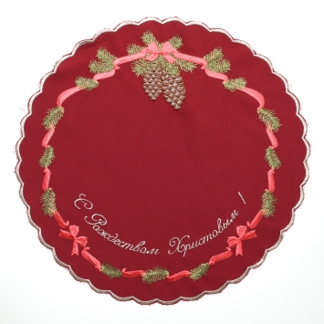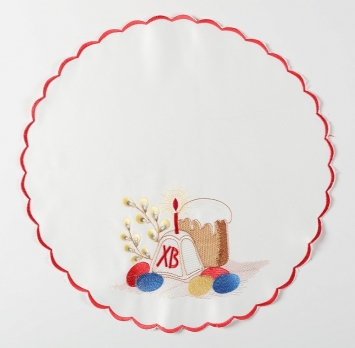 Салфетка церковная пасхальная вышитая лен круглая 31х31см (рисунок в ассортименте) №5