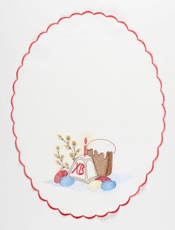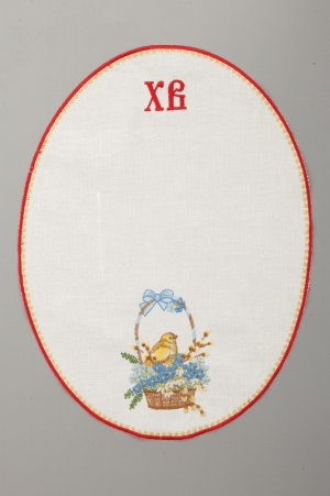 Салфетка церковная пасхальная вышитая лен овальная 28х38см (рисунок в ассортименте) №5