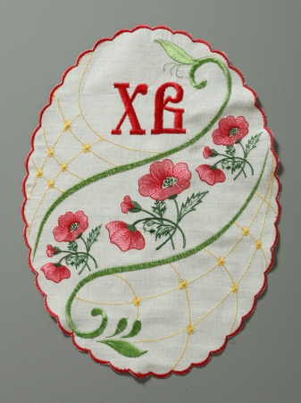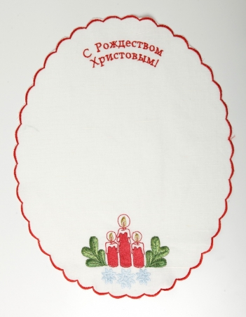 Салфетка церковная пасхальная вышитая лен овальная 25х34см (рисунок в ассортименте) №4