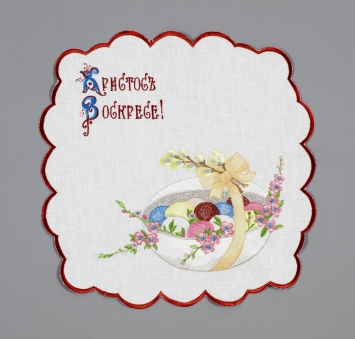 Салфетка церковная пасхальная вышитая лен 34х34см №1