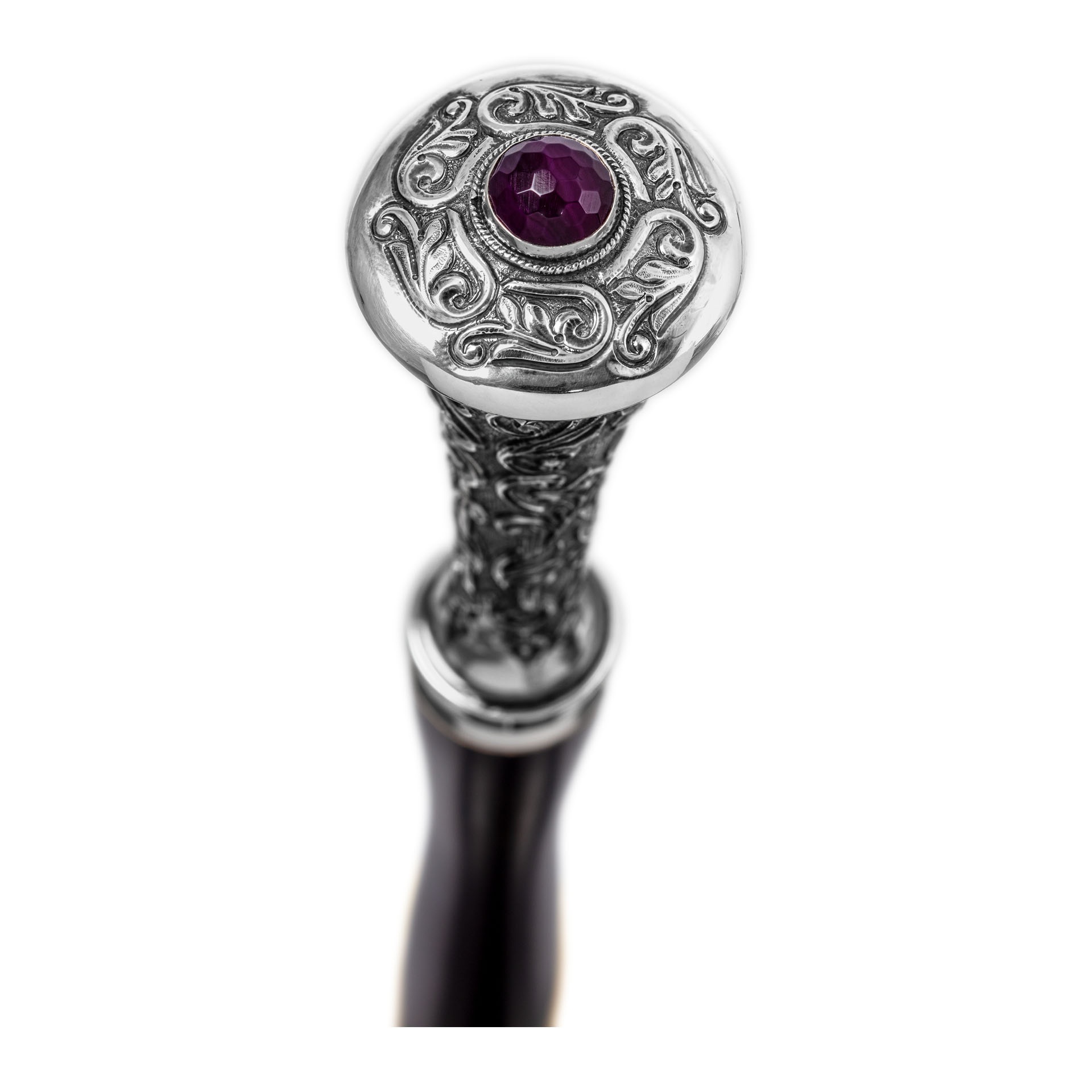 Посох №25 неразборный чеканный с фигурным окончанием №2 / серебрение