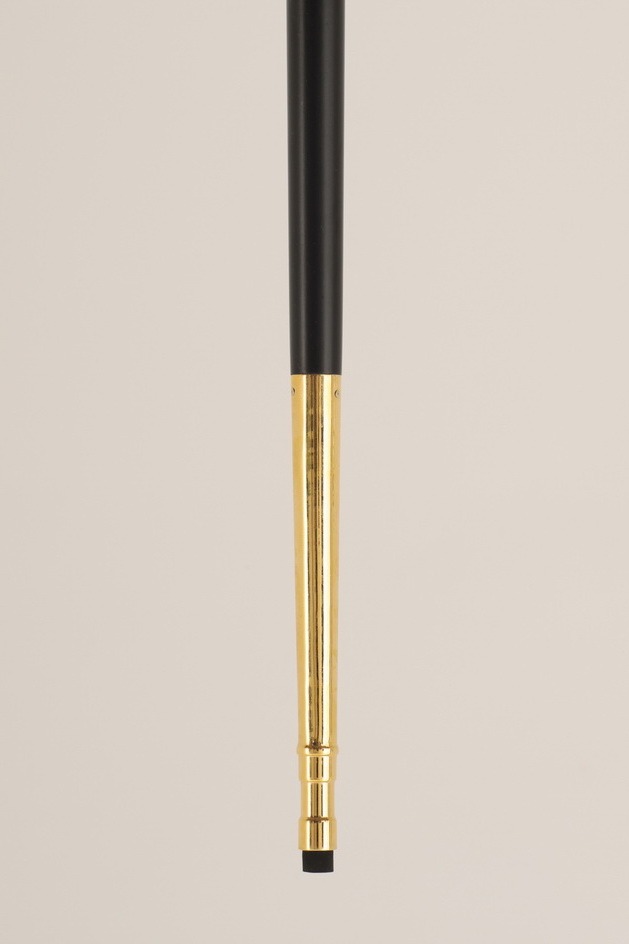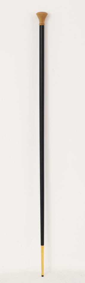 Классический посох с минималистичным деревянным оглавием приятного орехового цвета воплощает собой простоту и благородство. Снизу черное древко имеет медное завершение, которое уберегает изделие от деформации при контакте с землей.