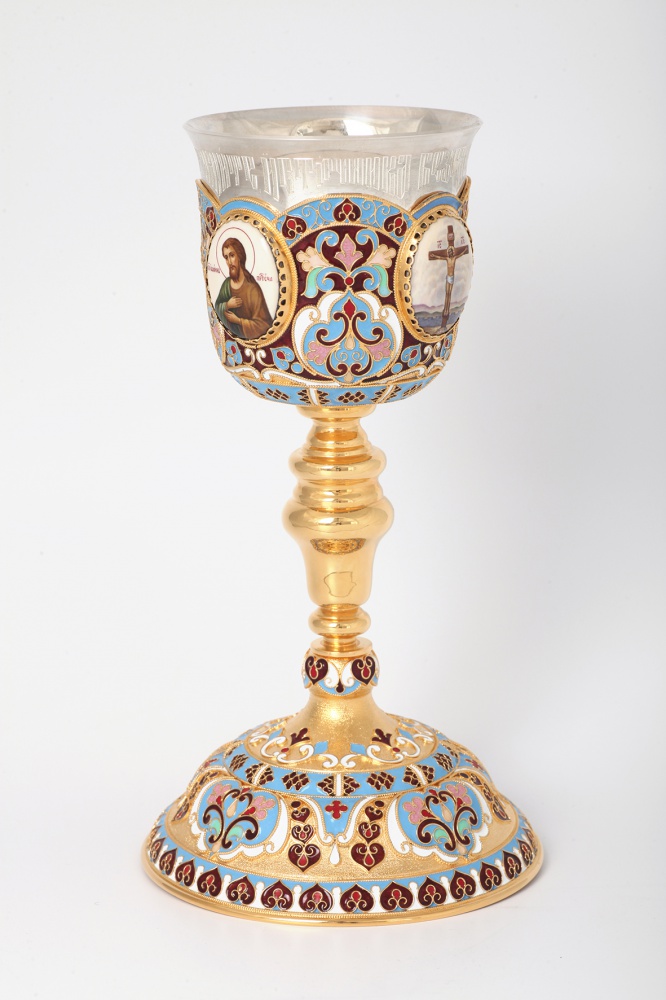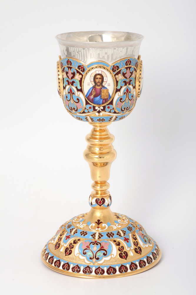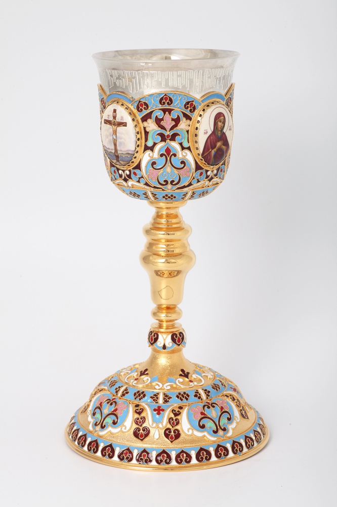 Потир 0.3л 4-финифти, филигрань, эмаль "№1" / золочение / серебряный стакан (УИН)