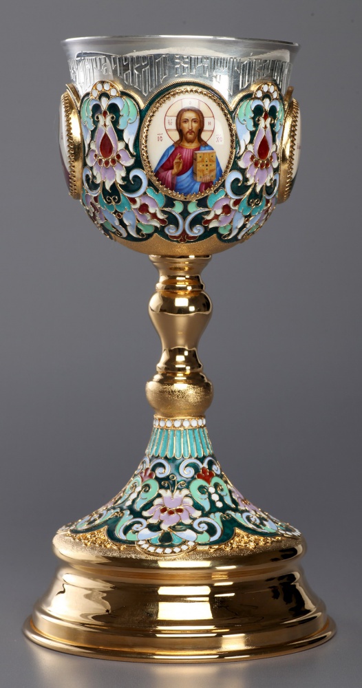 Потир 0.3л 4-финифти, филигрань, эмаль / золочение / серебряный стакан (УИН)