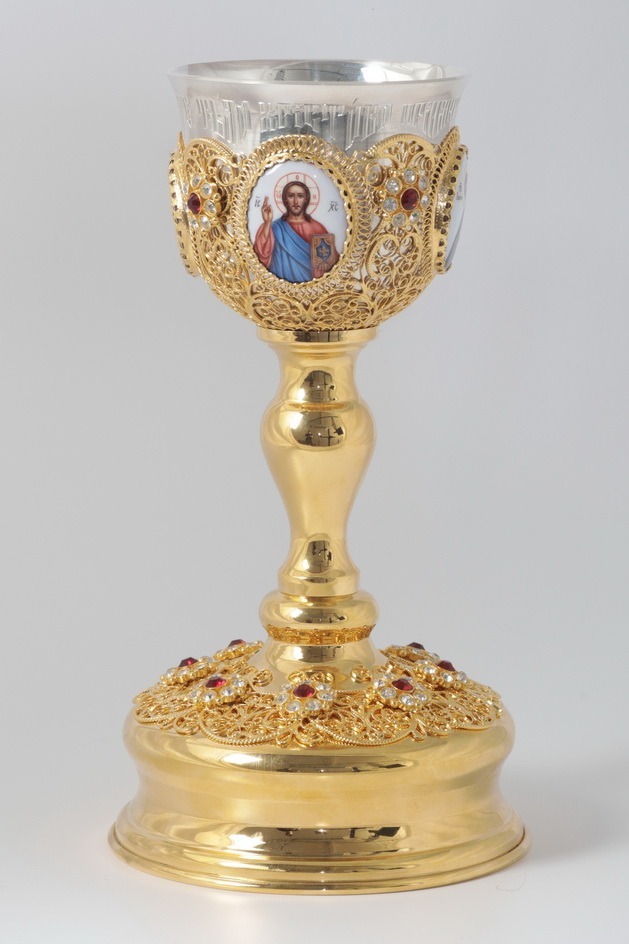 Потир 0.3л 4-финифти, филигрань / золочение / серебряный стакан (УИН)