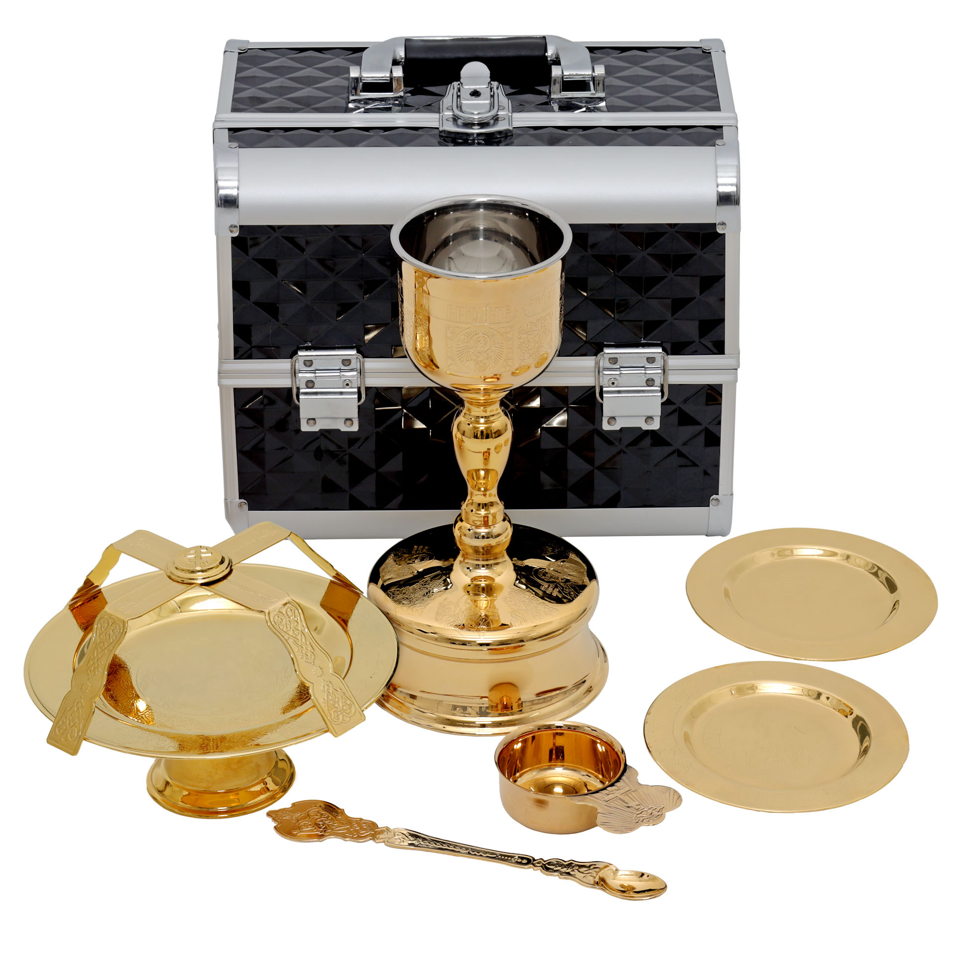 Потир 0.5 с принадлежностями с вклад.(нерж. сталь) золочение в метал футляре