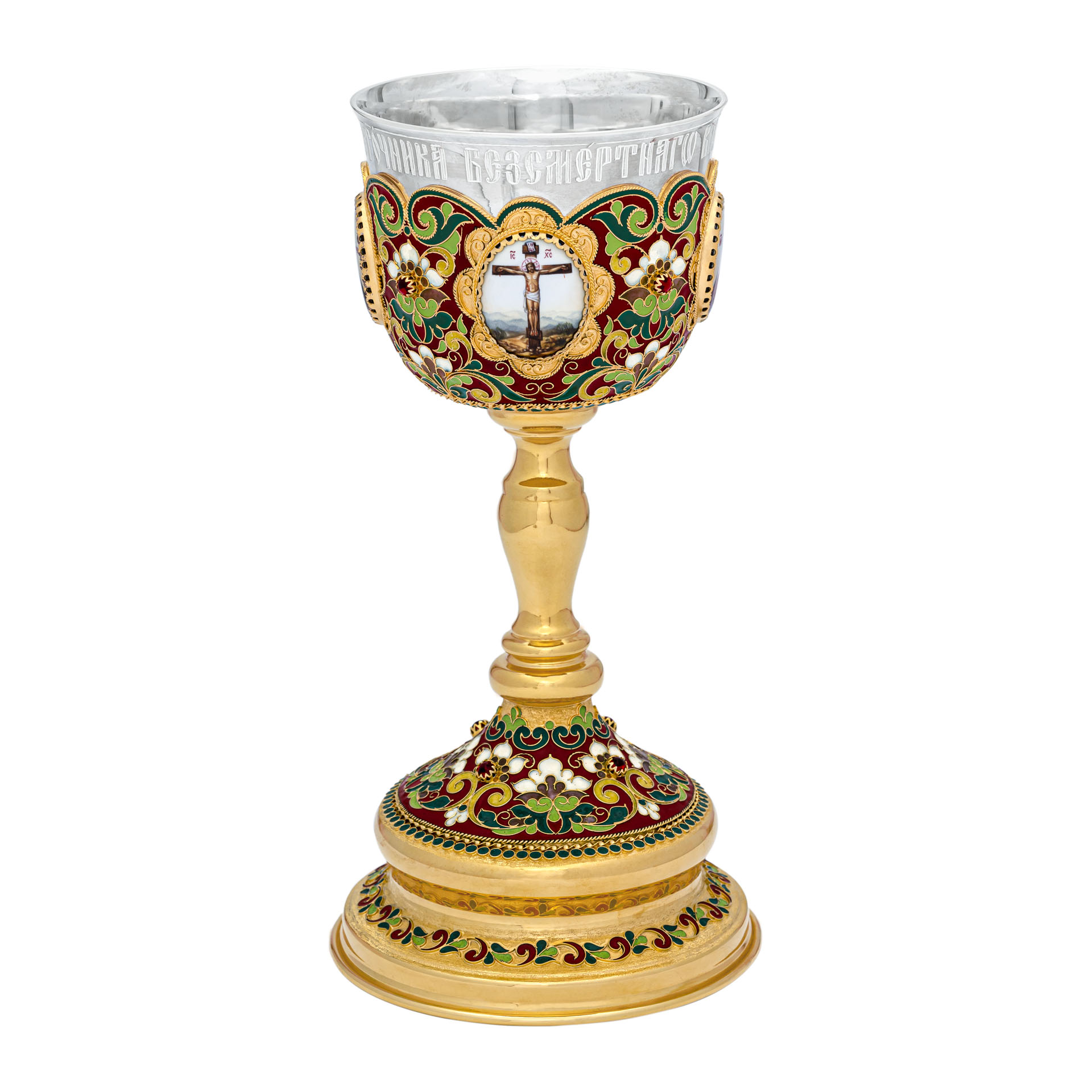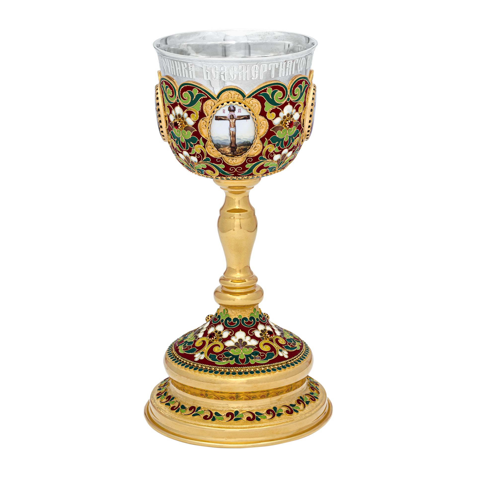 Потир 0.53л 4-финифти, филигрань, эмаль / золочение / серебряный стакан (УИН)