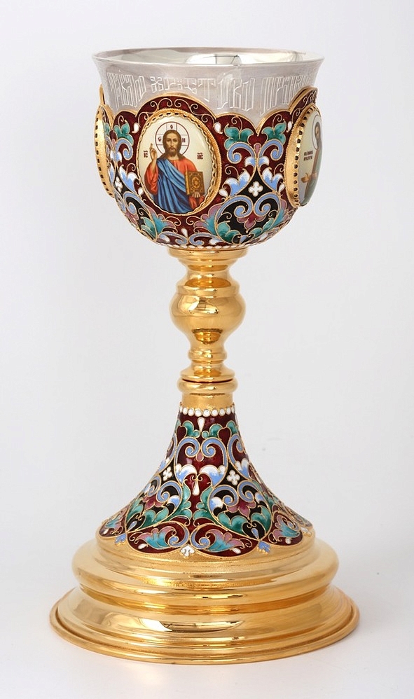 Потир 0.5л 4-деколи, филигрань, эмаль / золочение / серебряный стакан (УИН)