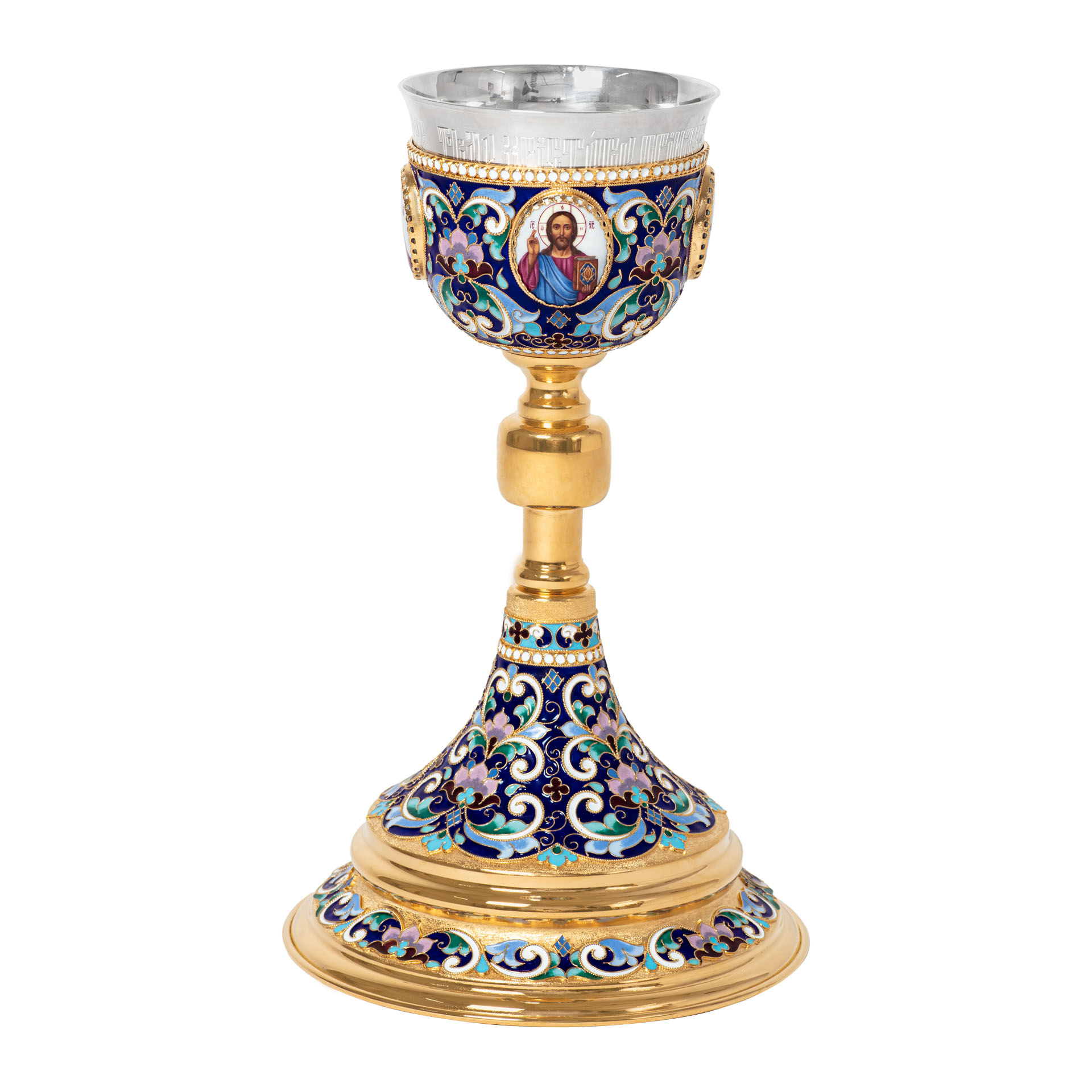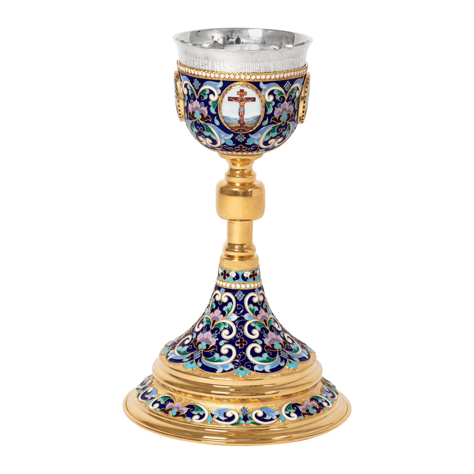 Потир 0.5л 4-финифти, филигрань, эмаль "№13" / золочение / серебряный стакан (УИН)