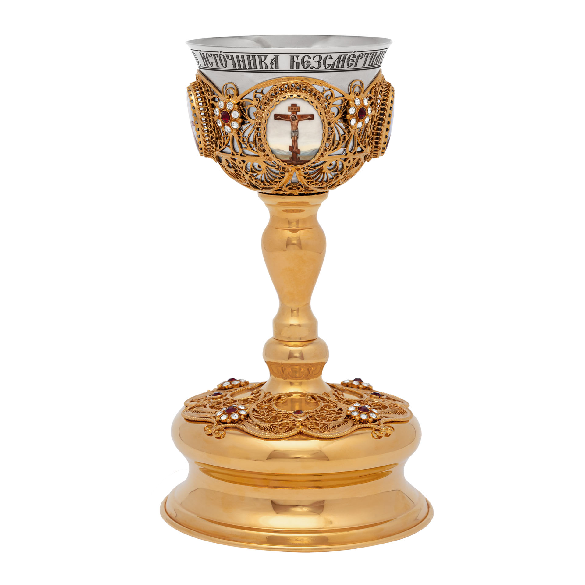 Потир 0.5л 4-финифти, филигрань / золочение / нержавеющий стакан