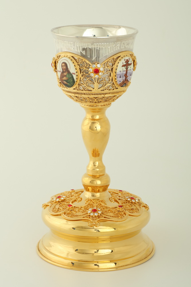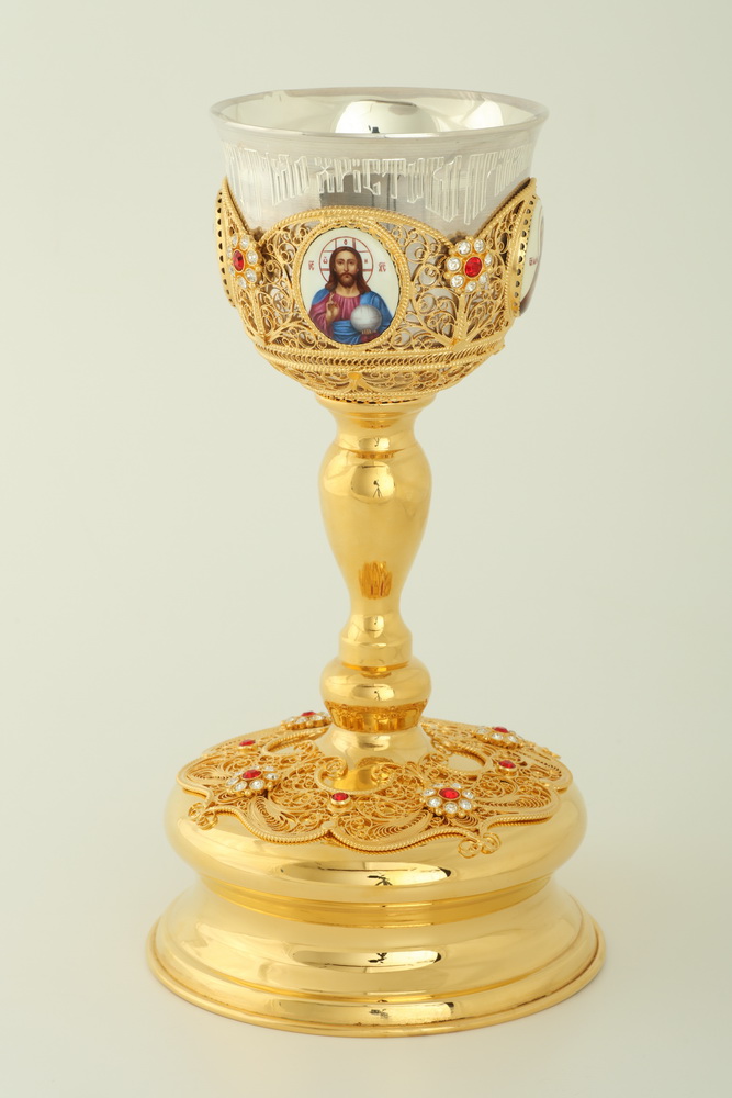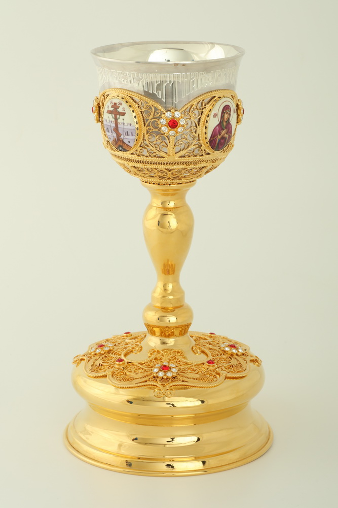 Потир 0.5л 4-финифти, филигрань / золочение / серебряный стакан (УИН)