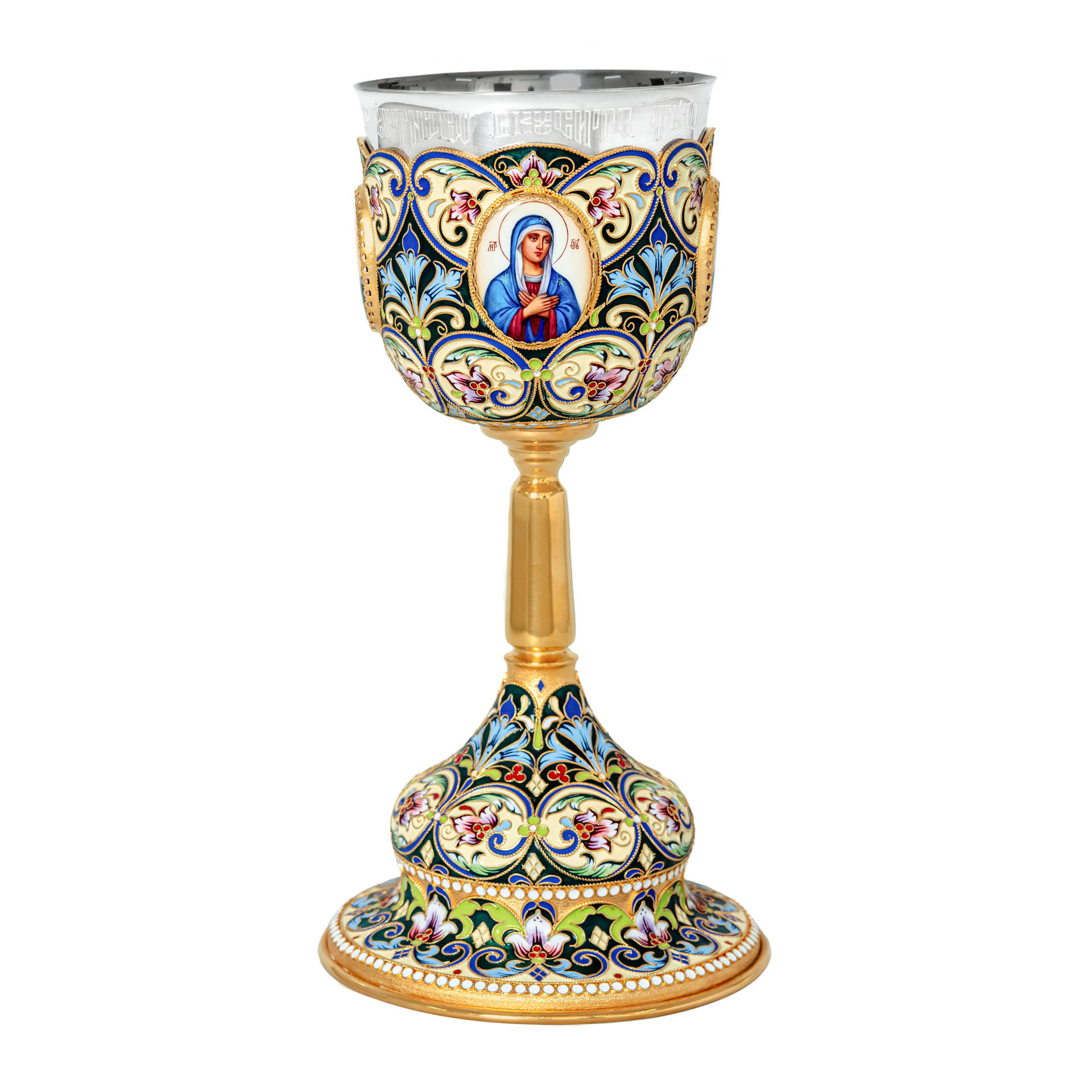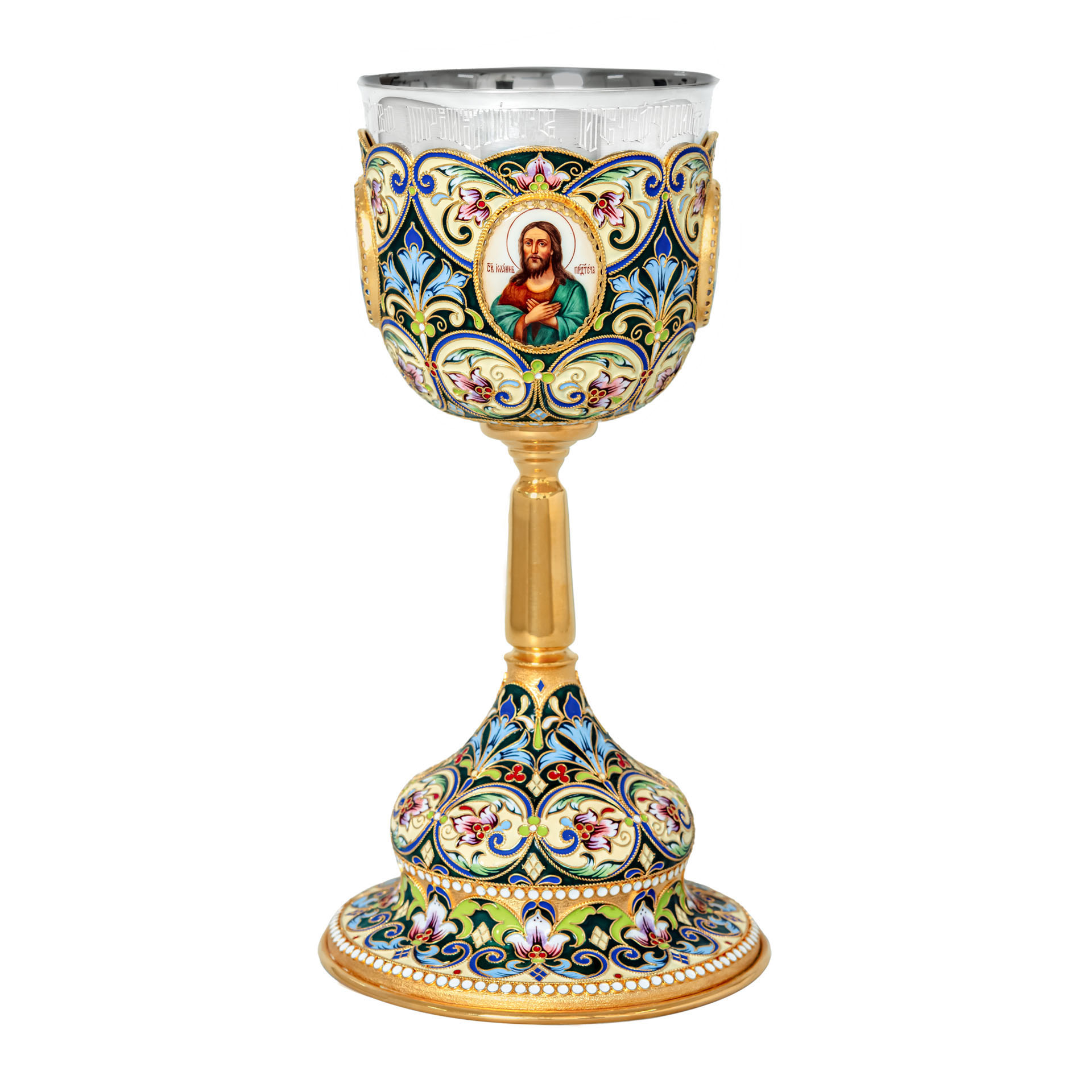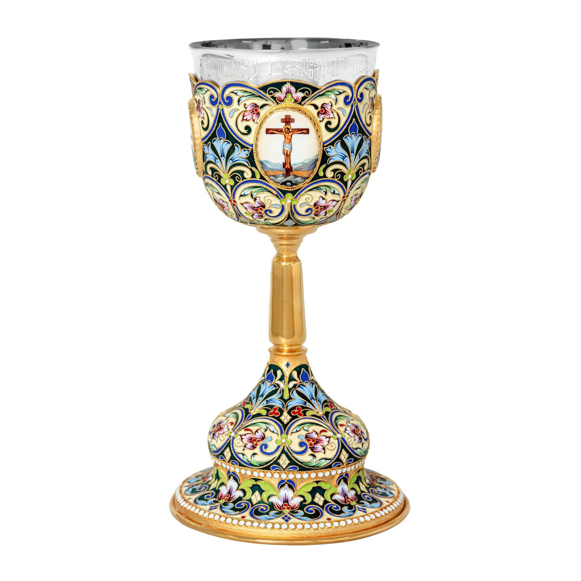 Потир 0.75л 4-финифти, филигрань, эмаль, роспись "№3" / золочение / серебряный стакан (УИН)