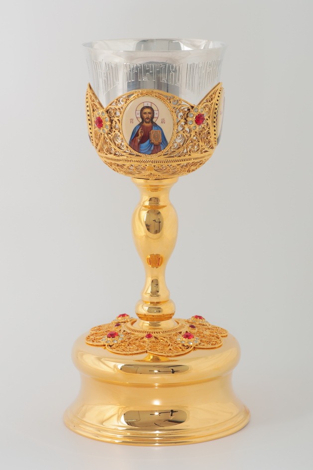 Потир 0.75л 4-финифти, филигрань / золочение / серебряный стакан (УИН)