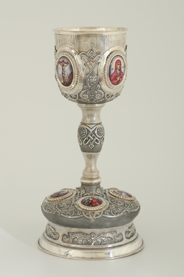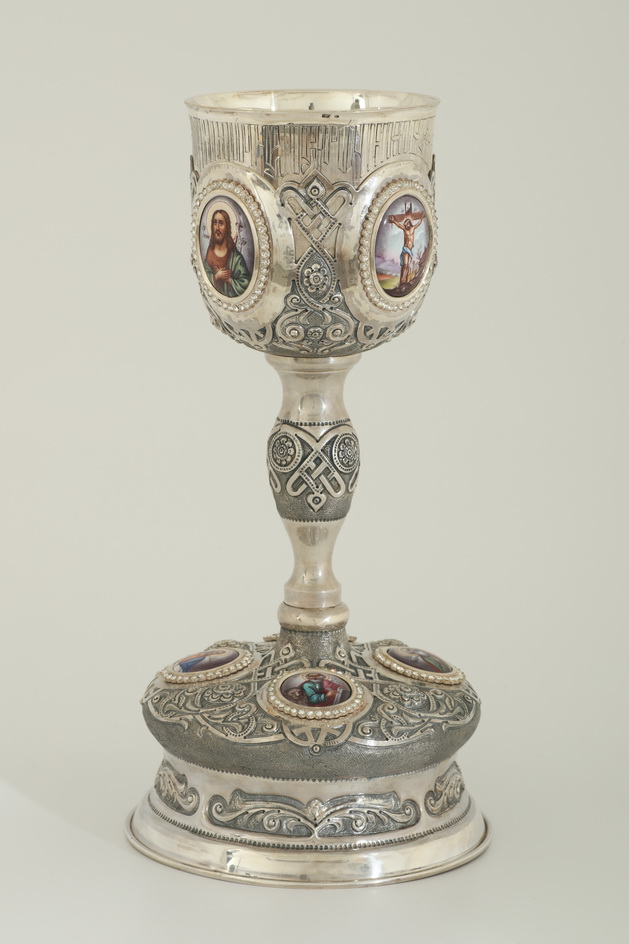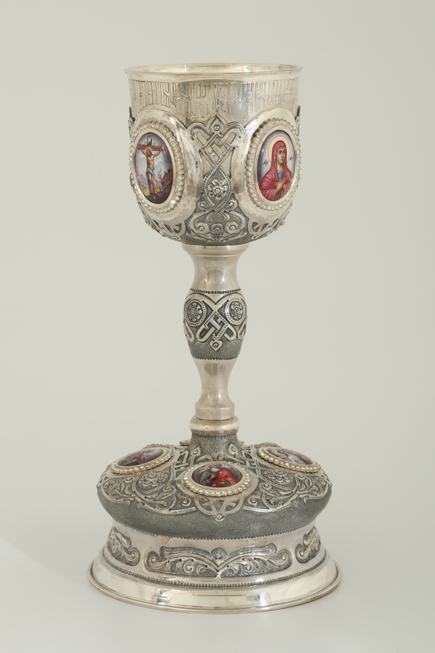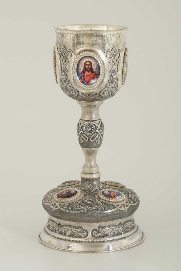 Потир 0.75л 8-финифтей, чеканка / поддон старого образца / серебро (УИН)