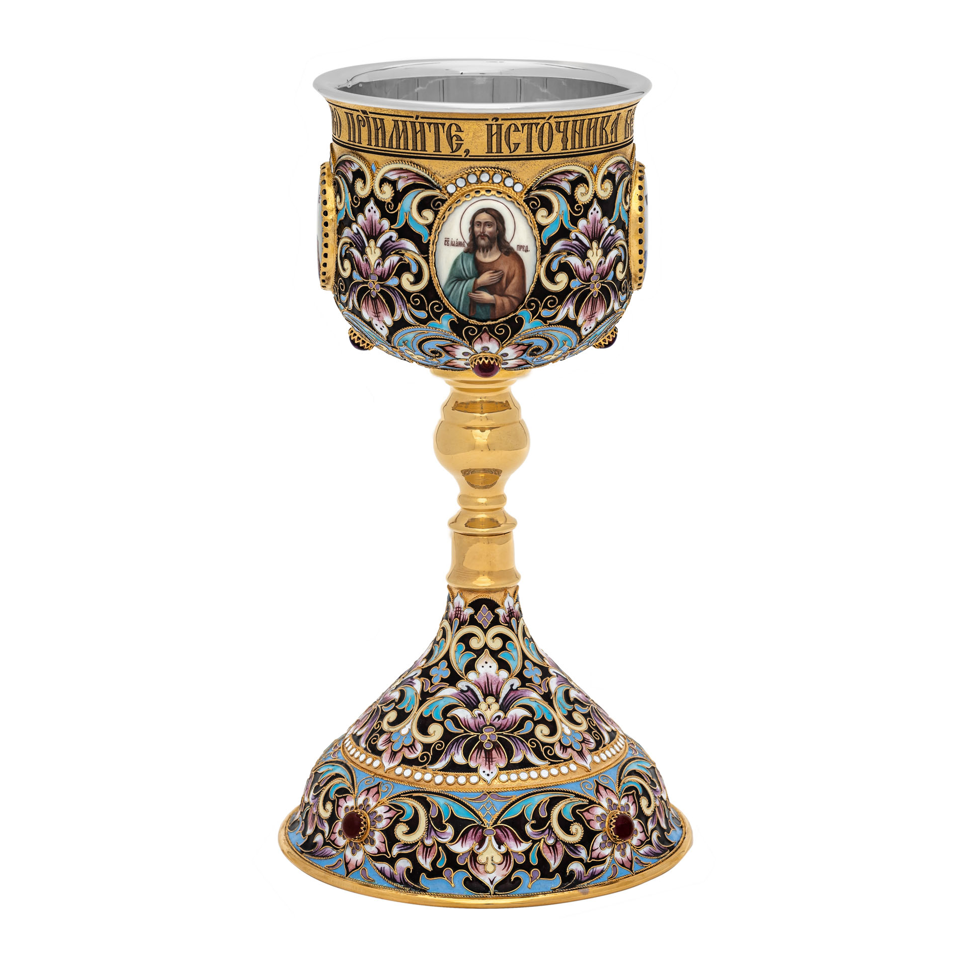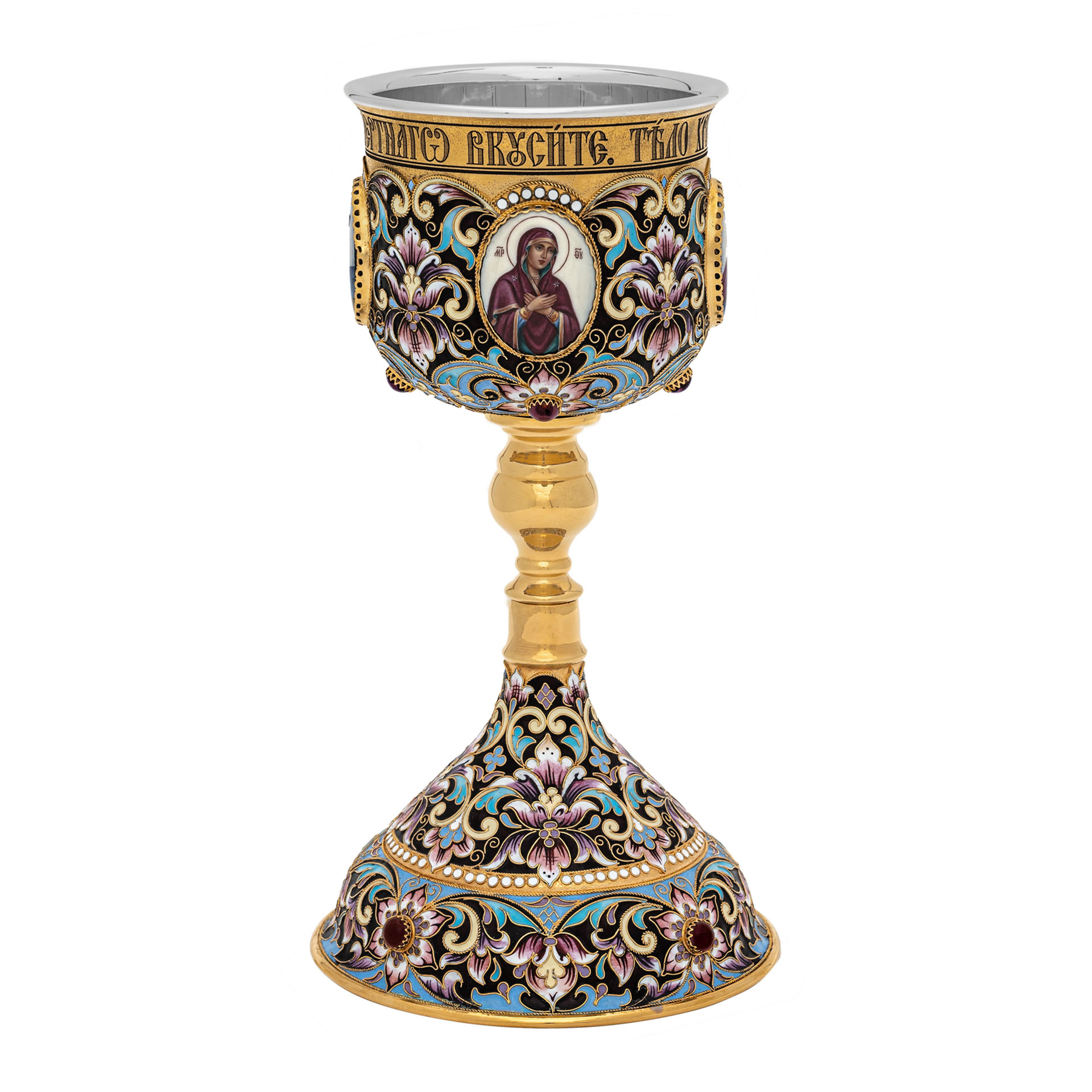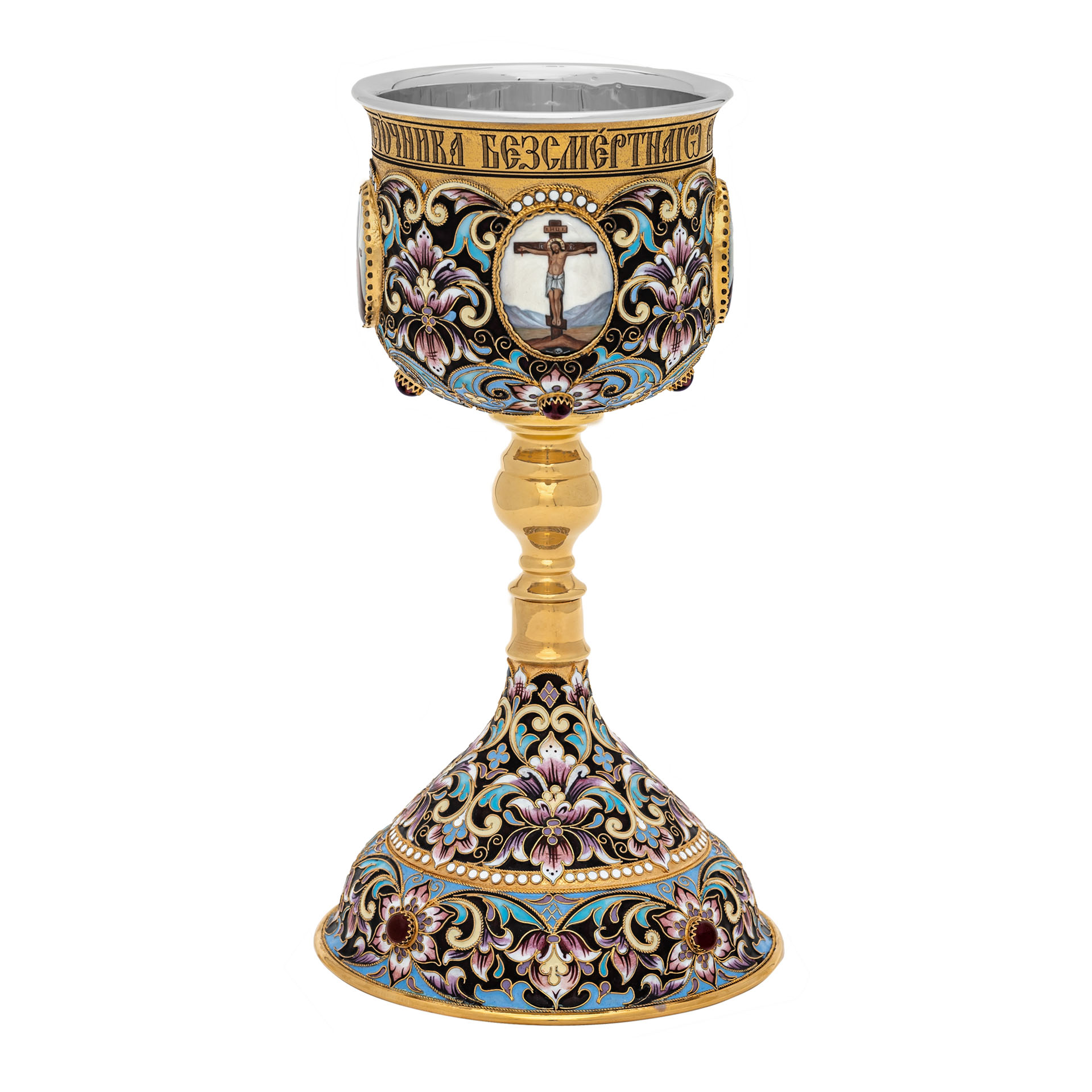 Потир 0.85л 4-финифти, филигрань, эмаль, роспись "№19" / золочение / серебряный вкладыш (УИН)