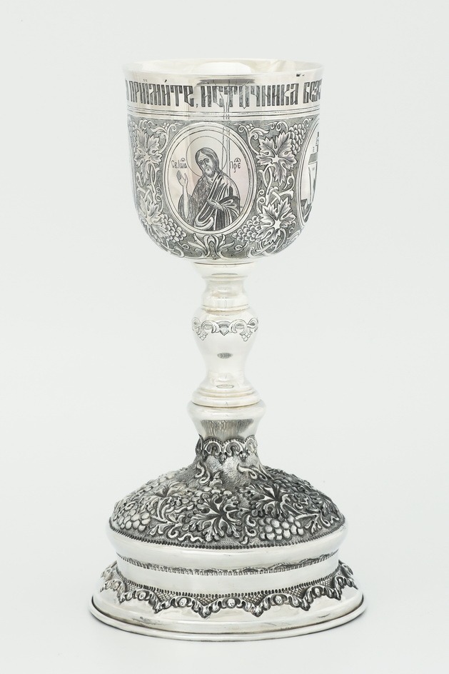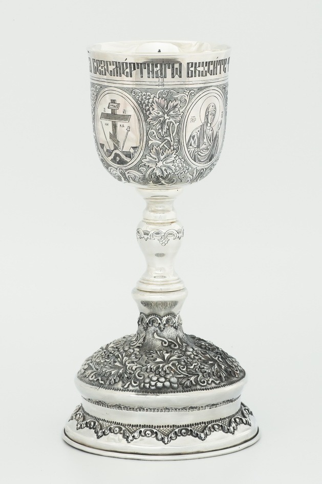 Потир 0.8л ручная гравировка с 4мя-ликами, чеканка серебро (УИН)