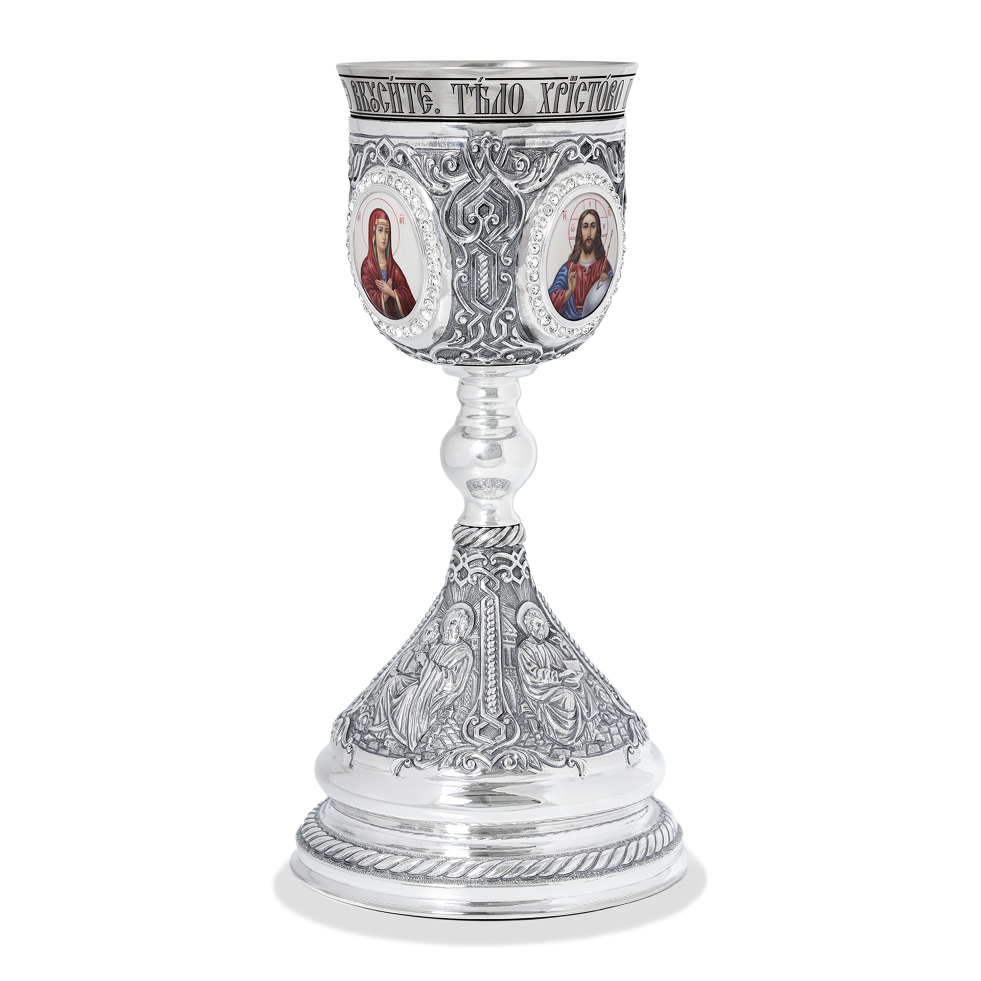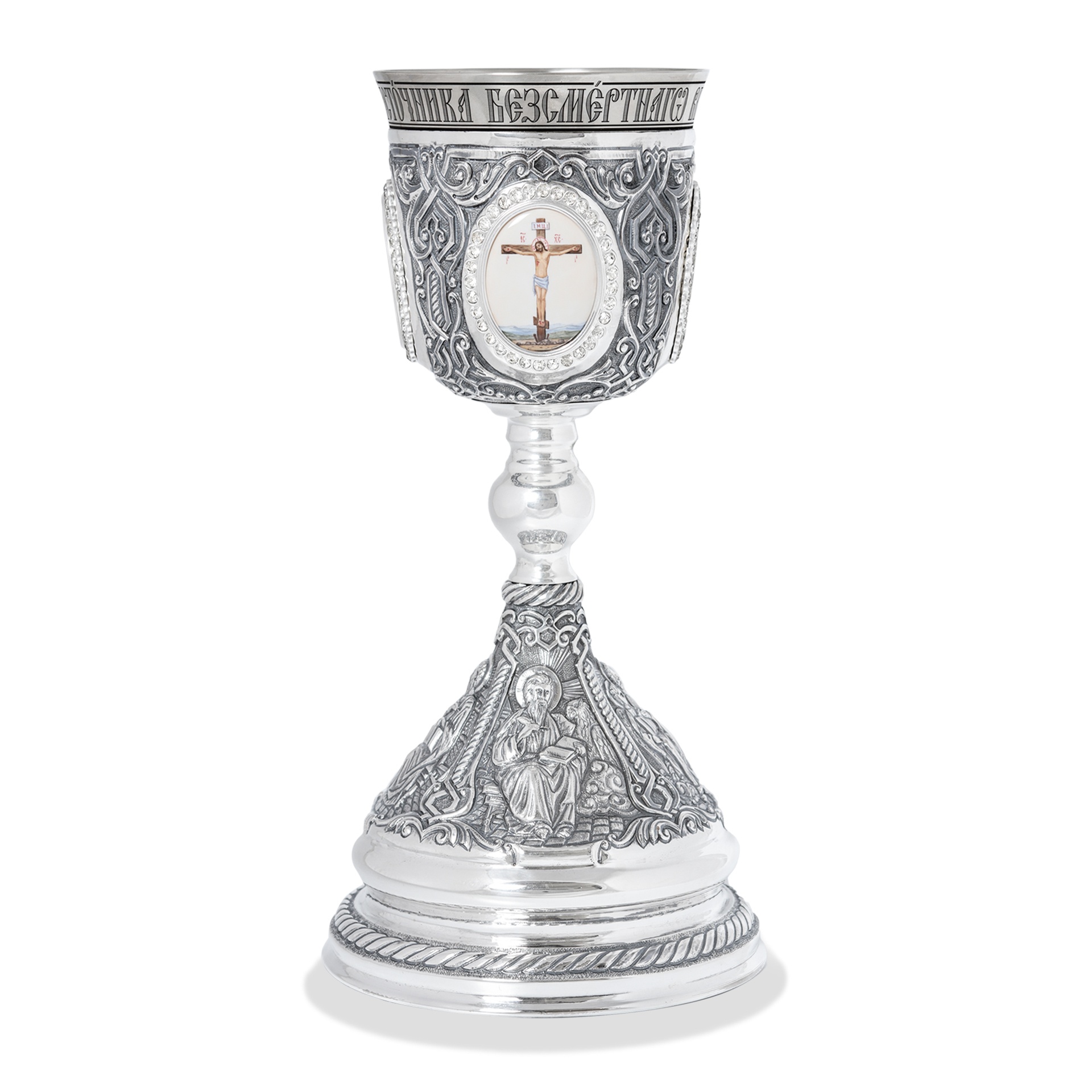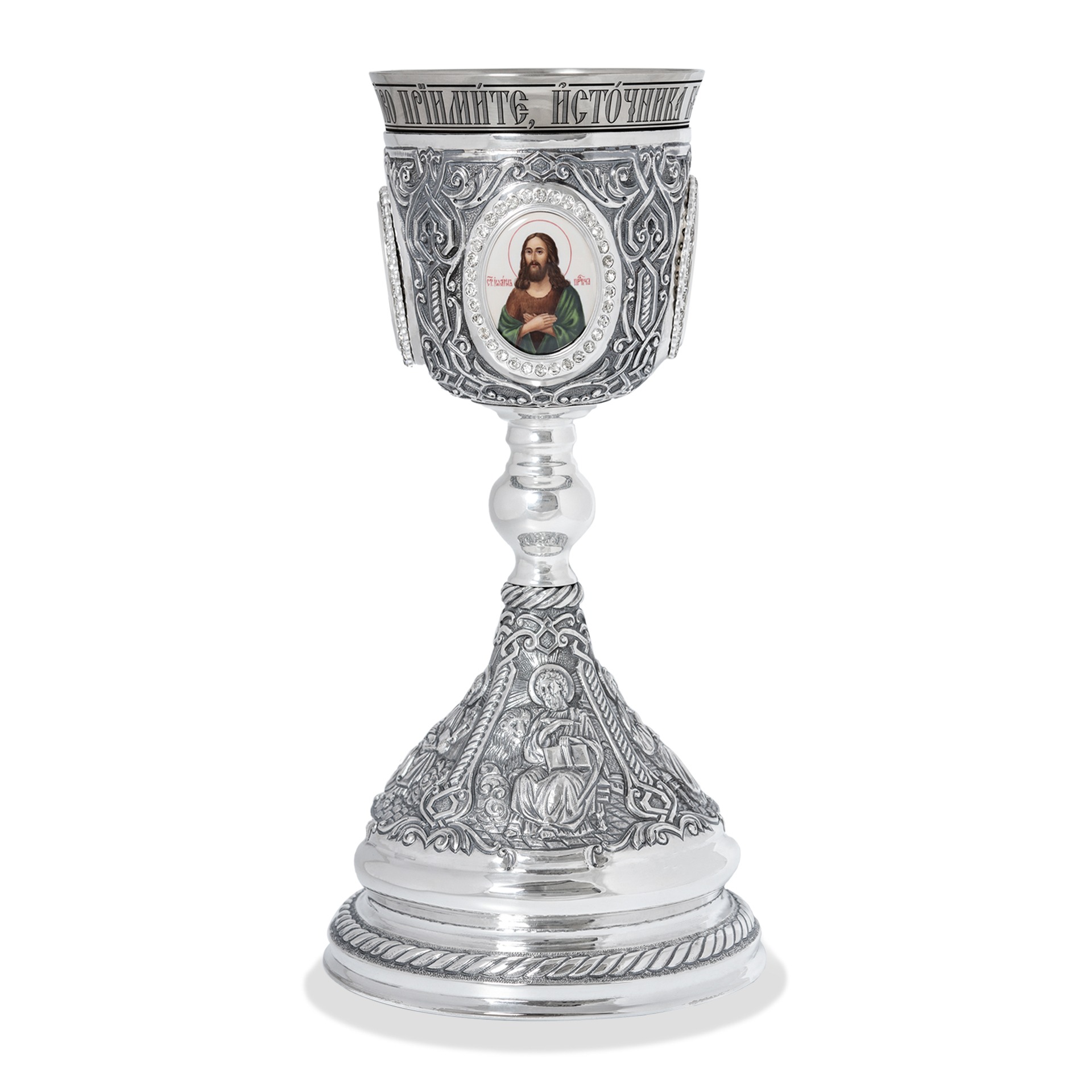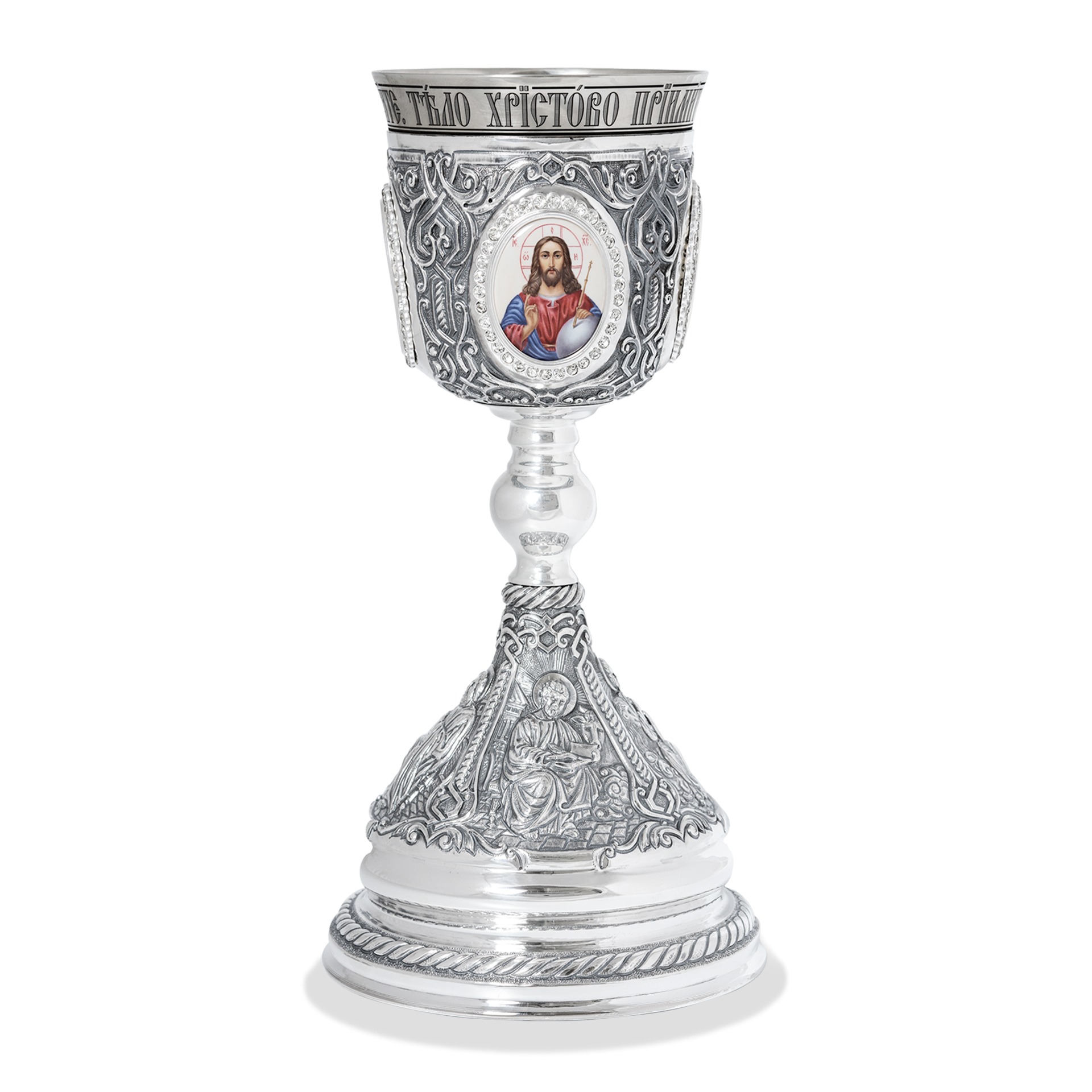 Потир 1.0л 4-финифти, чеканка с пророками / серебрение / мельхиоровый стакан