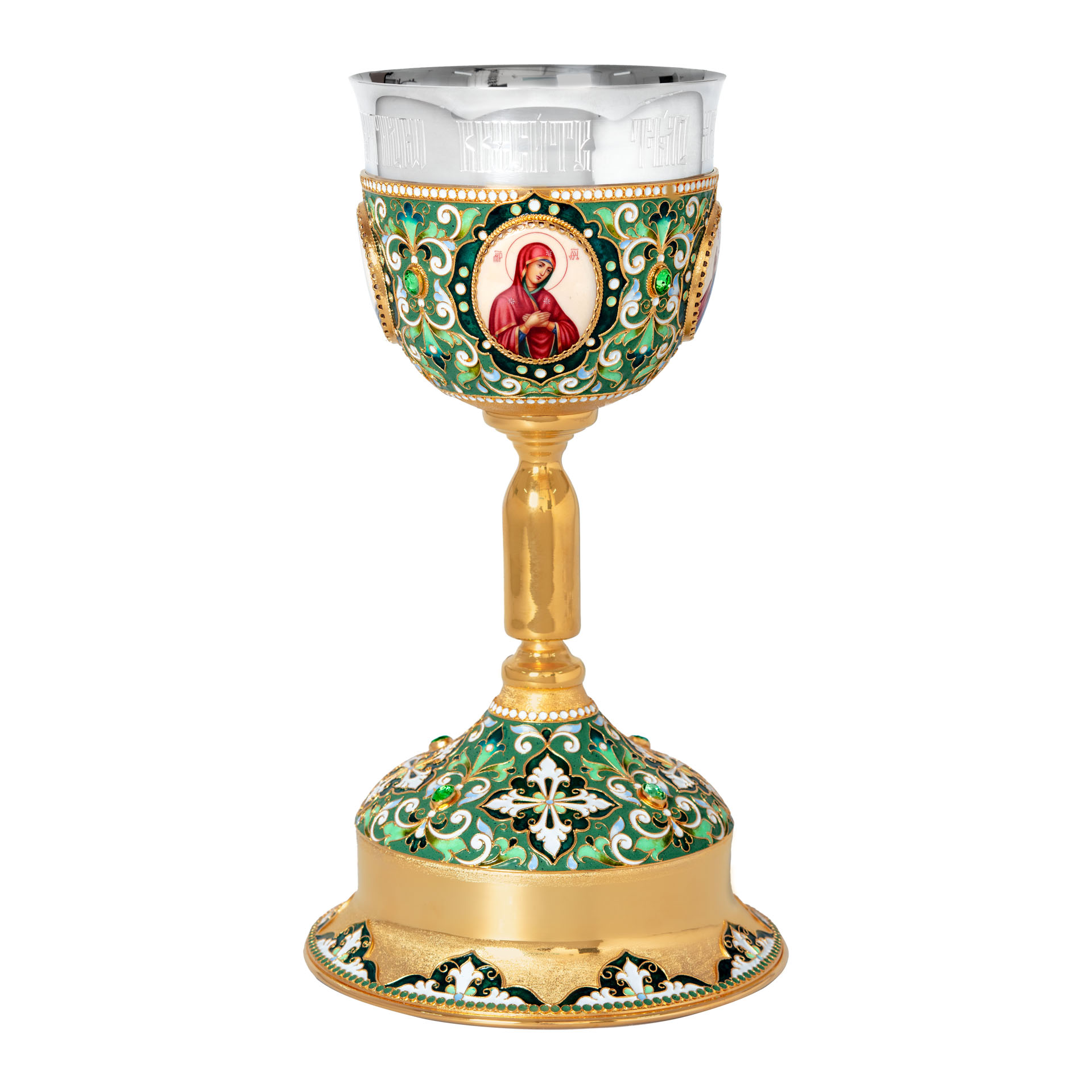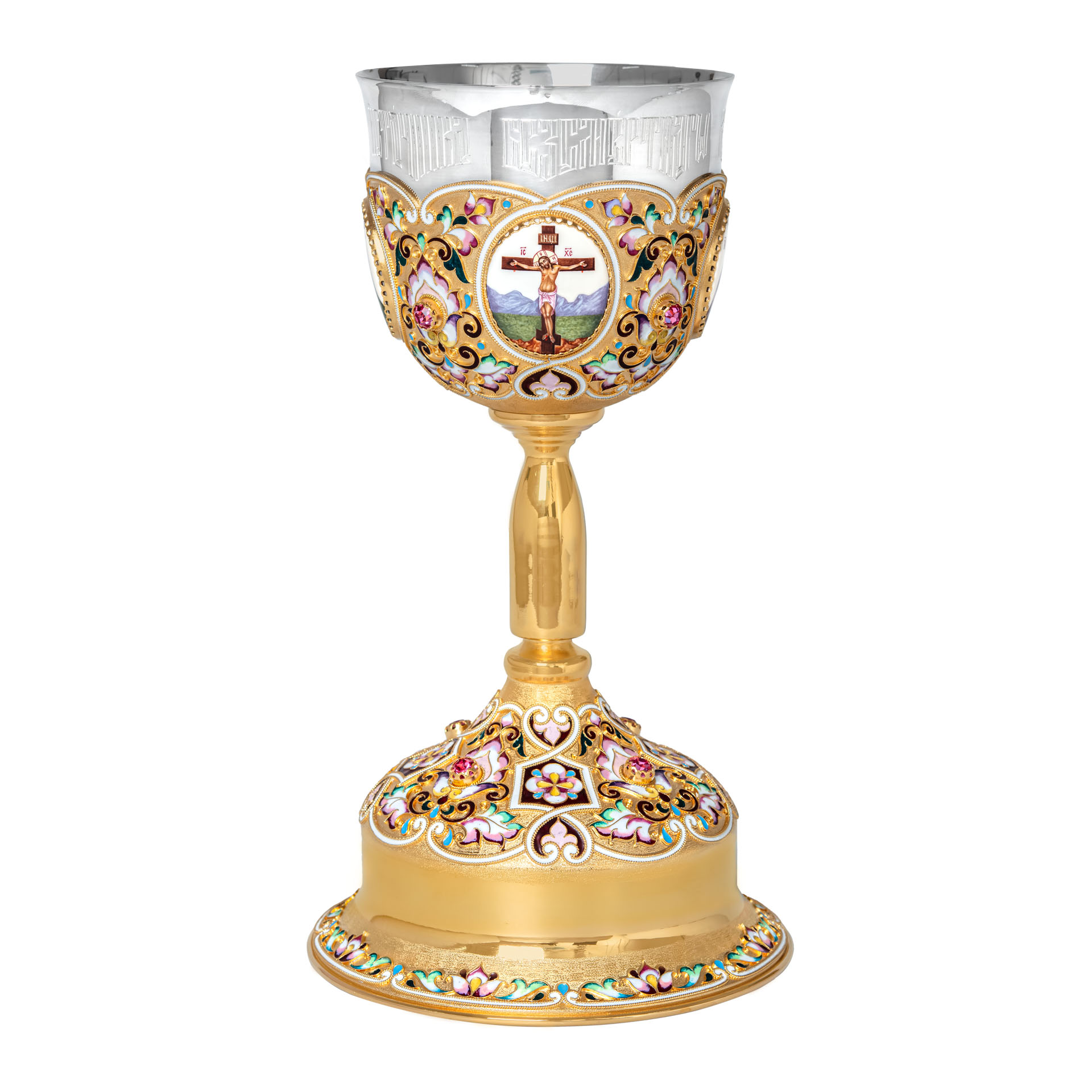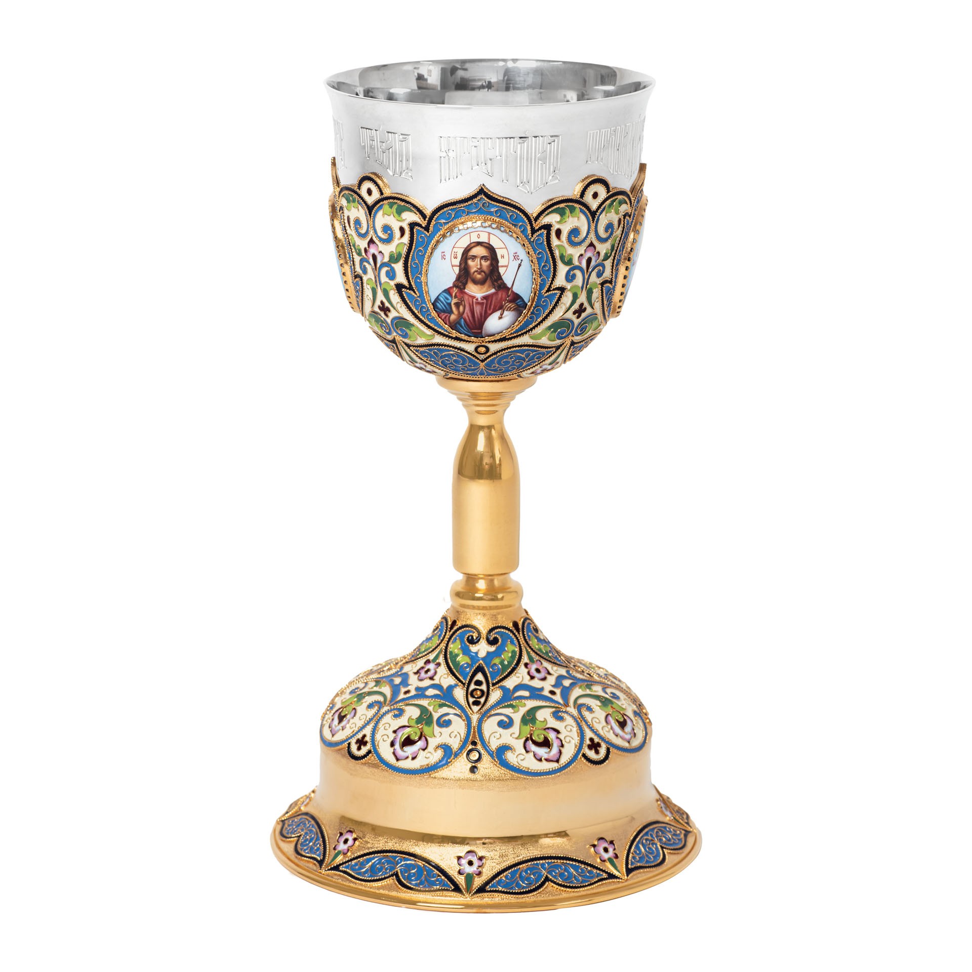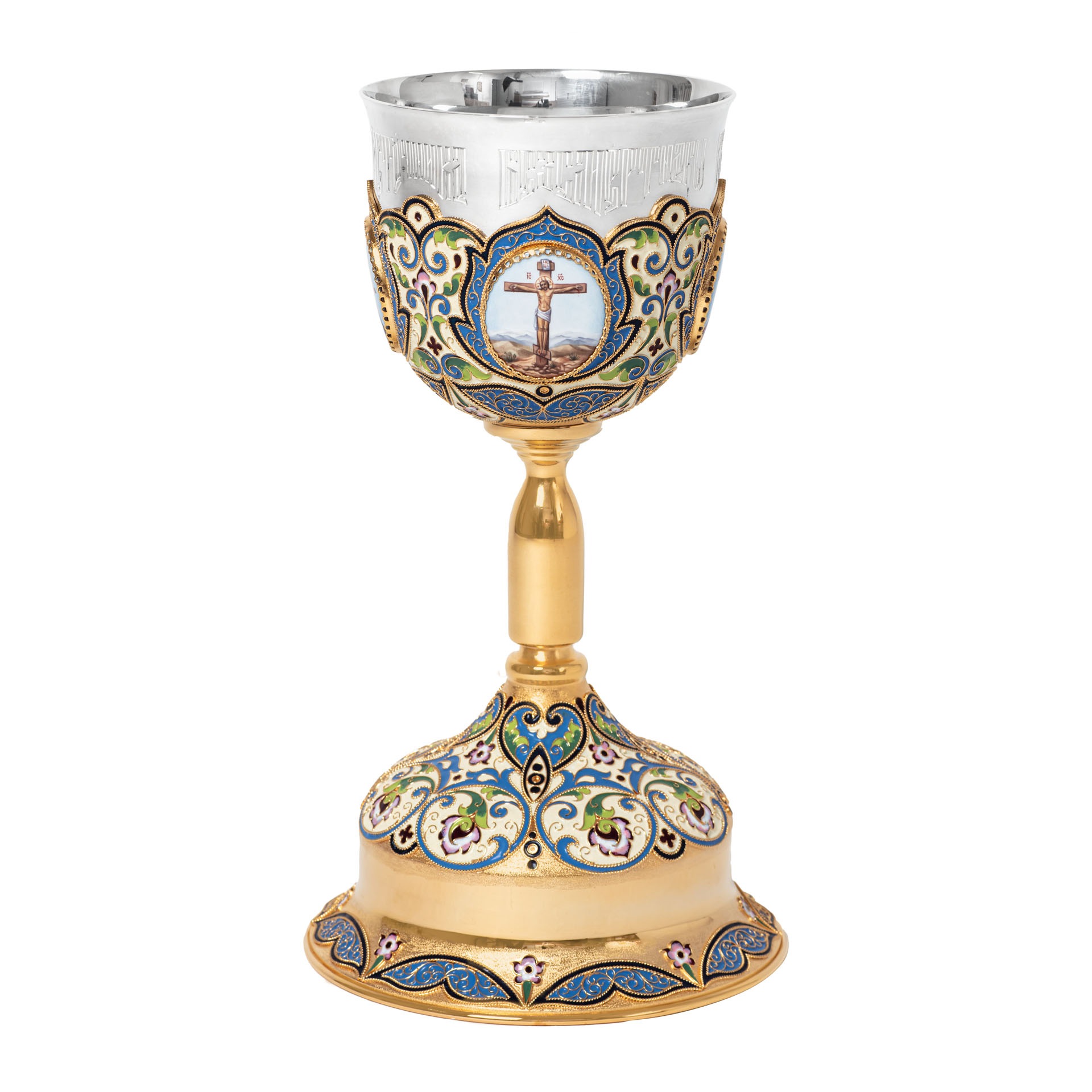 Потир 1.0л 4-финифти, филигрань, эмаль "№3" / золочение / серебряный стакан (УИН)