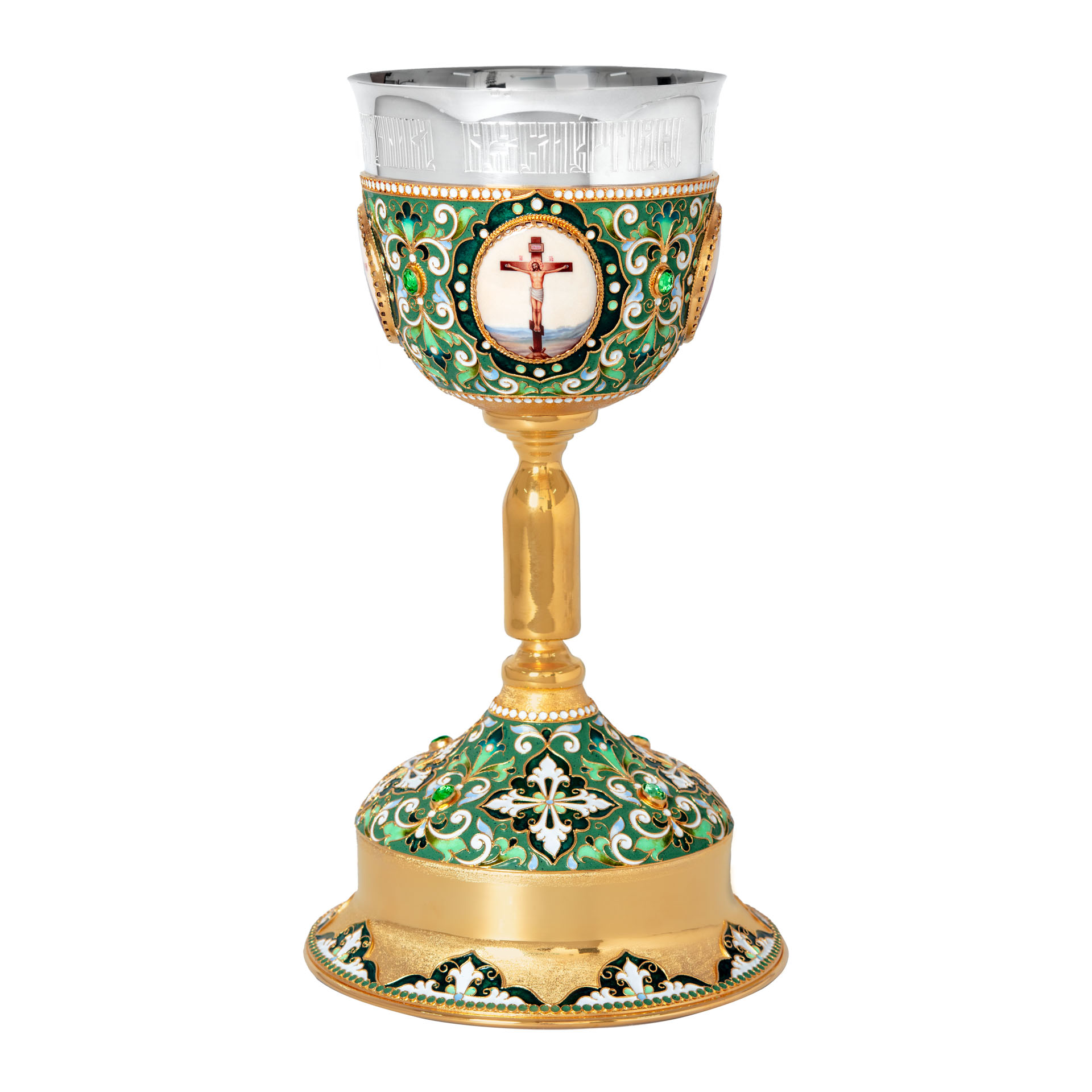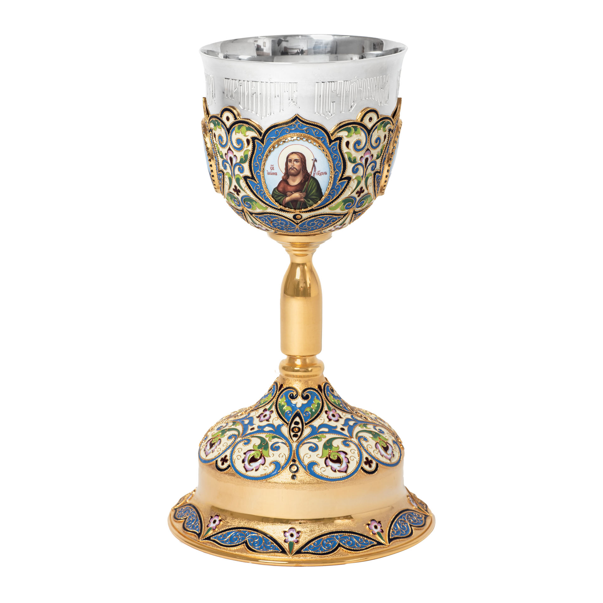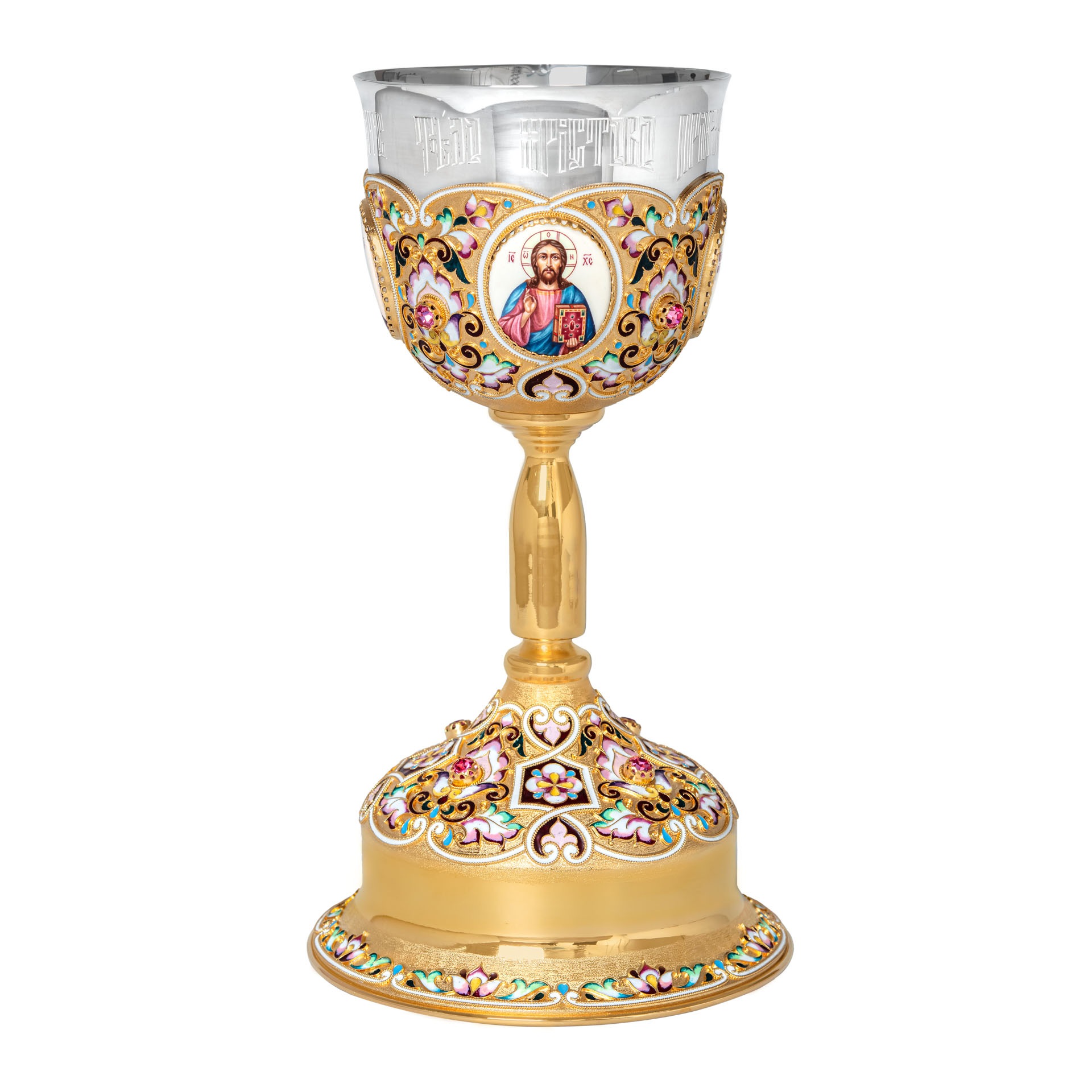 Потир 1.0л 4-финифти, филигрань, эмаль "№3" / золочение / серебряный стакан (УИН)