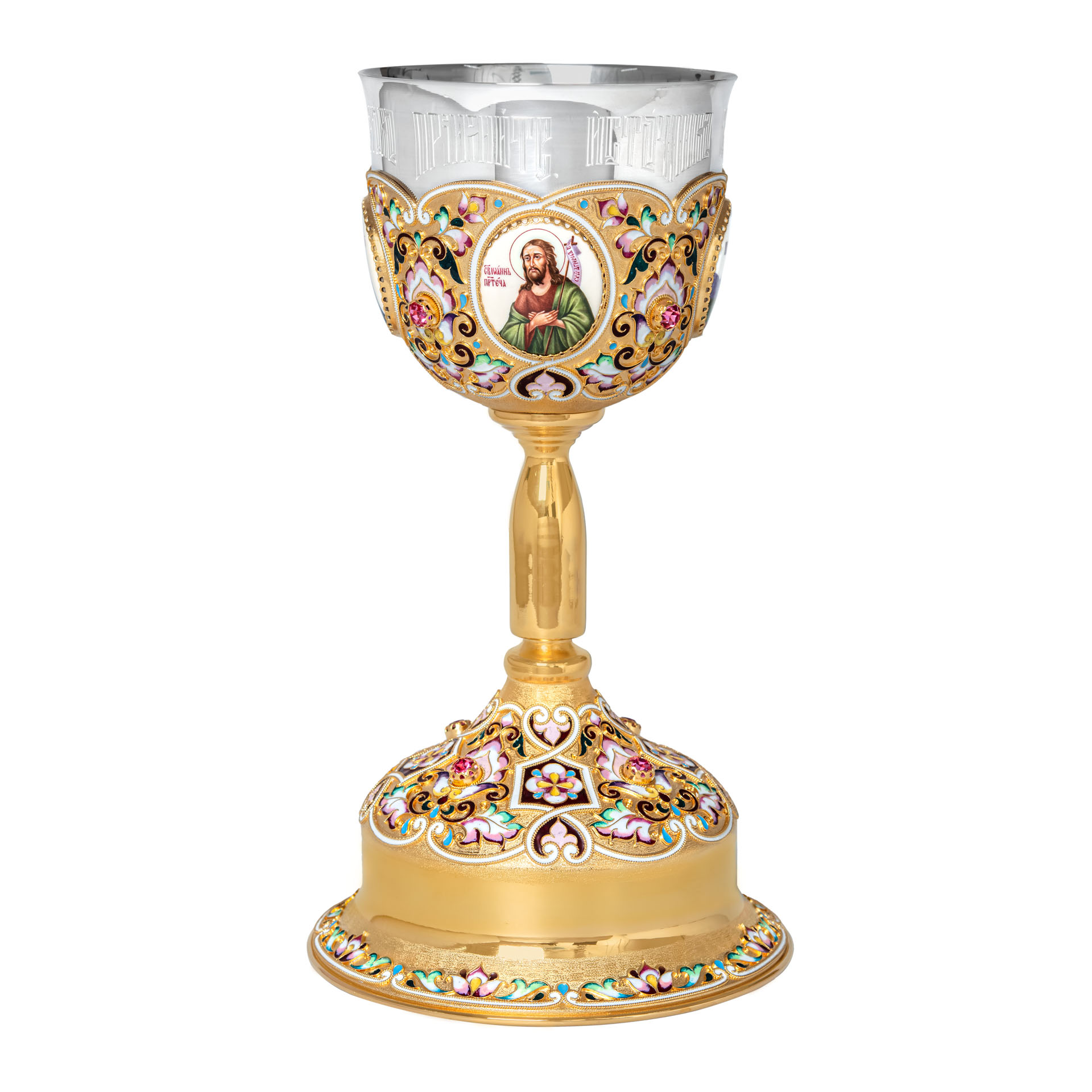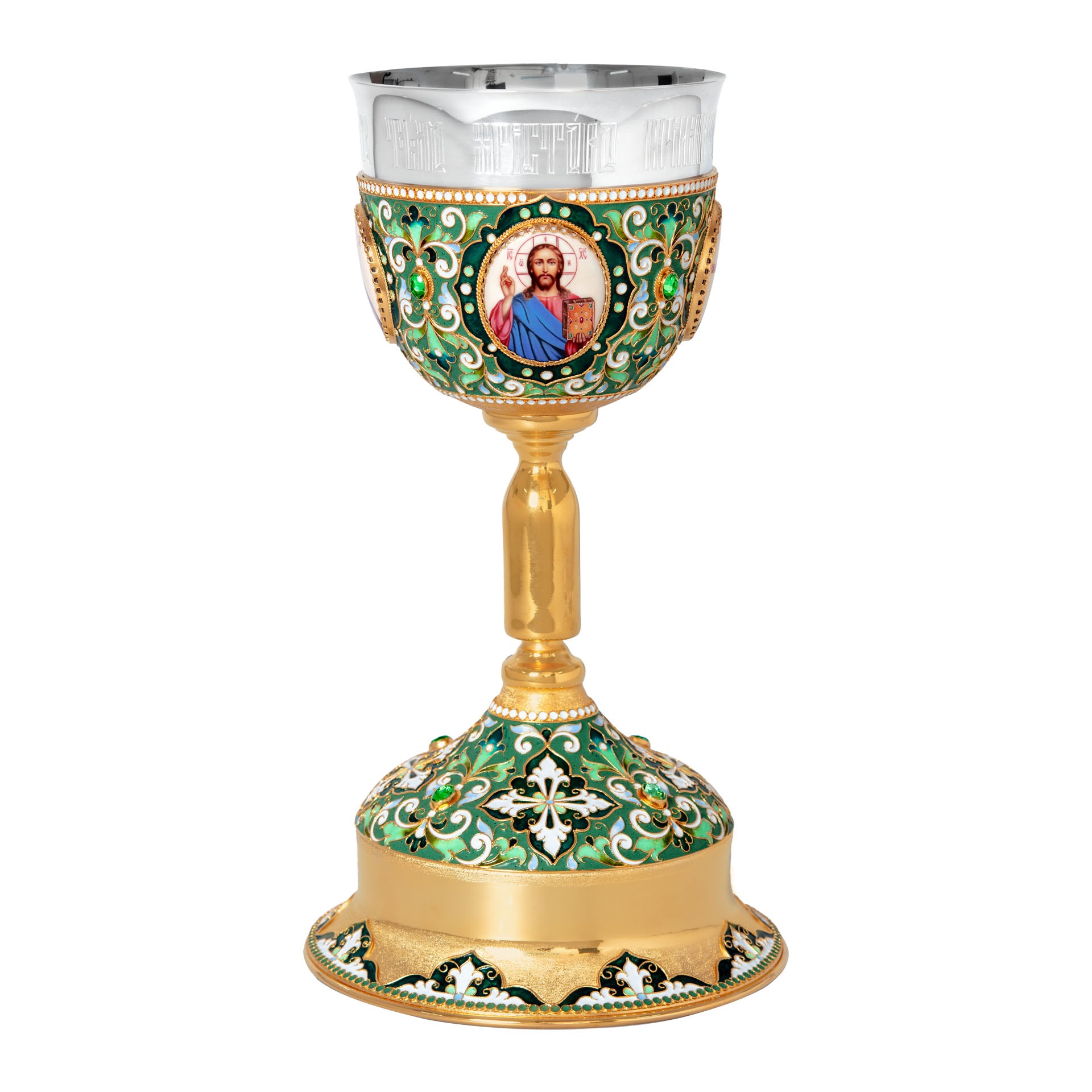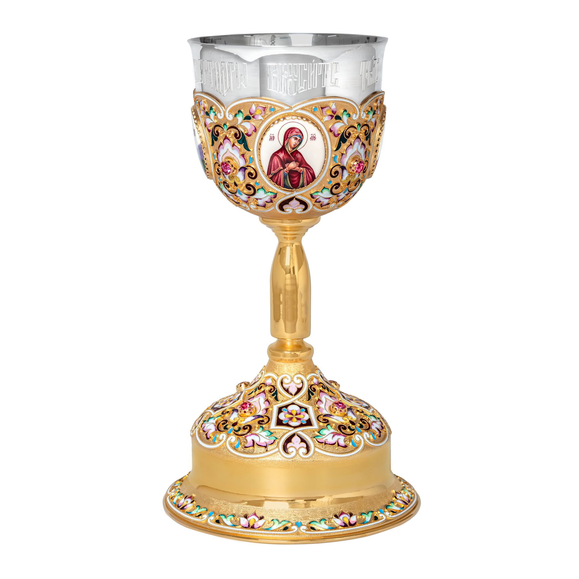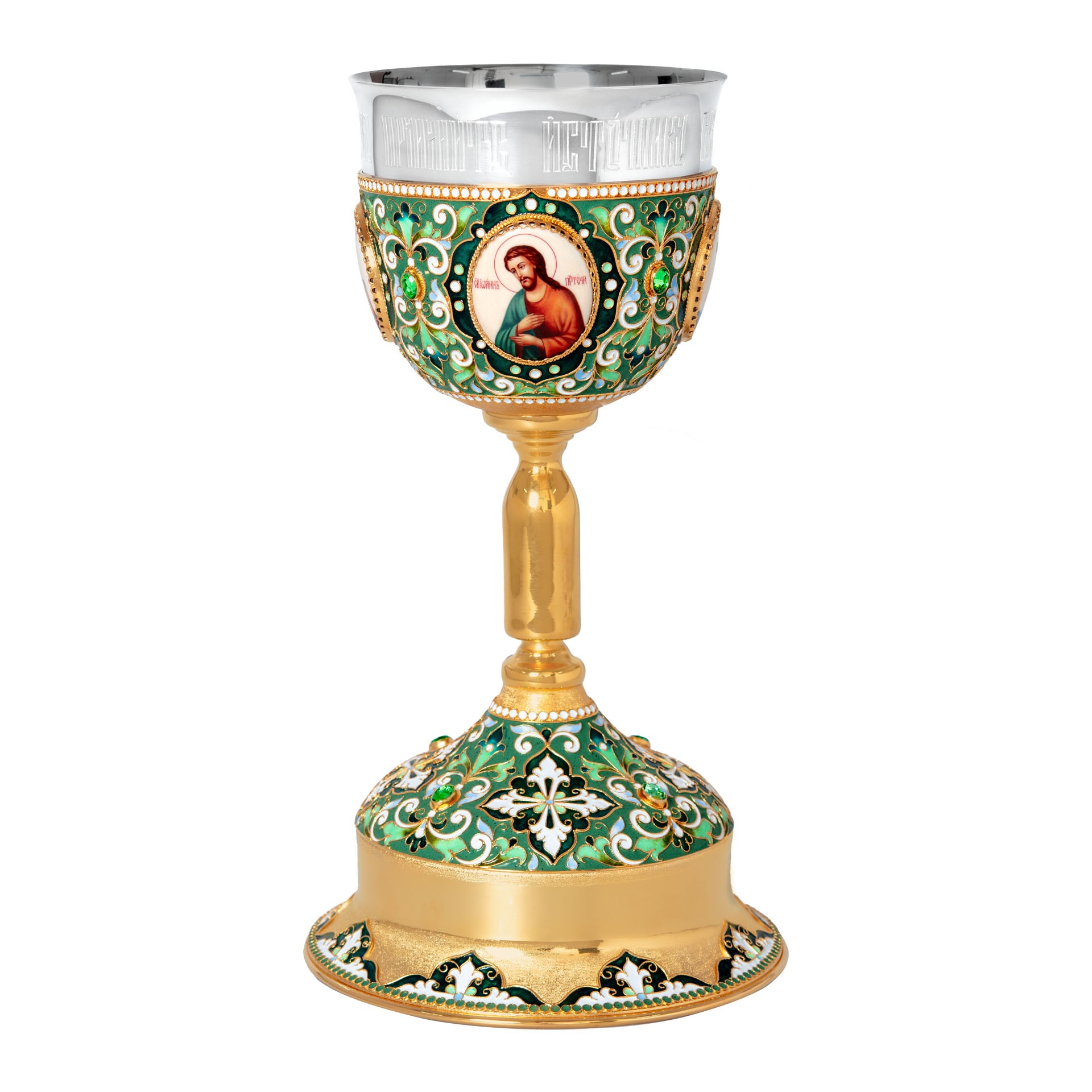 Потир 1.0л 4-финифти, филигрань, эмаль "№3" / золочение / серебряный стакан (УИН)