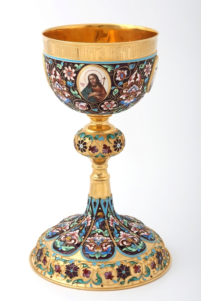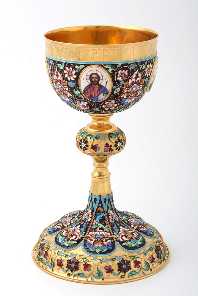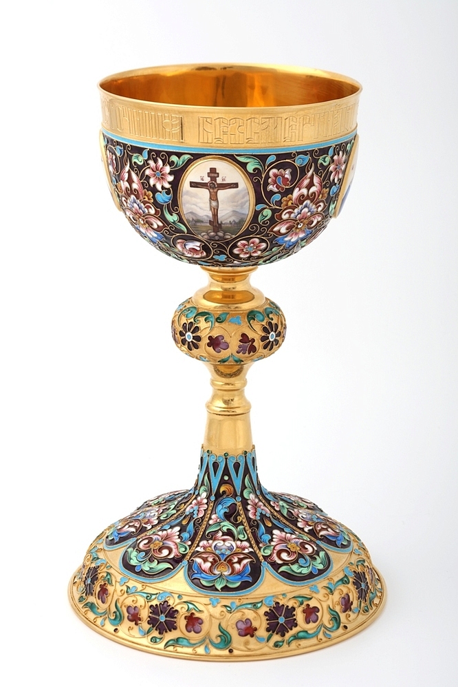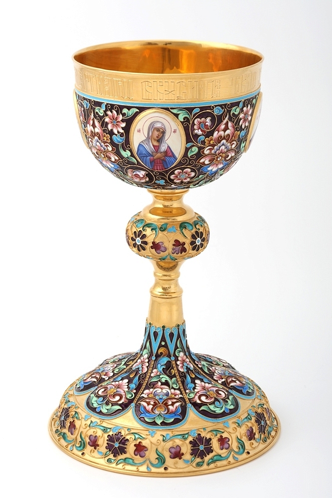 Потир 1.0л 4-финифти, филигрань, эмаль, роспись, чеканка "№4"А" / золочение / серебро (УИН)