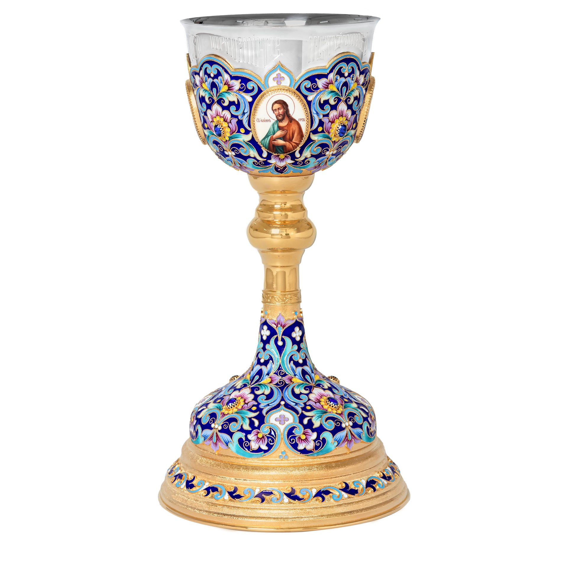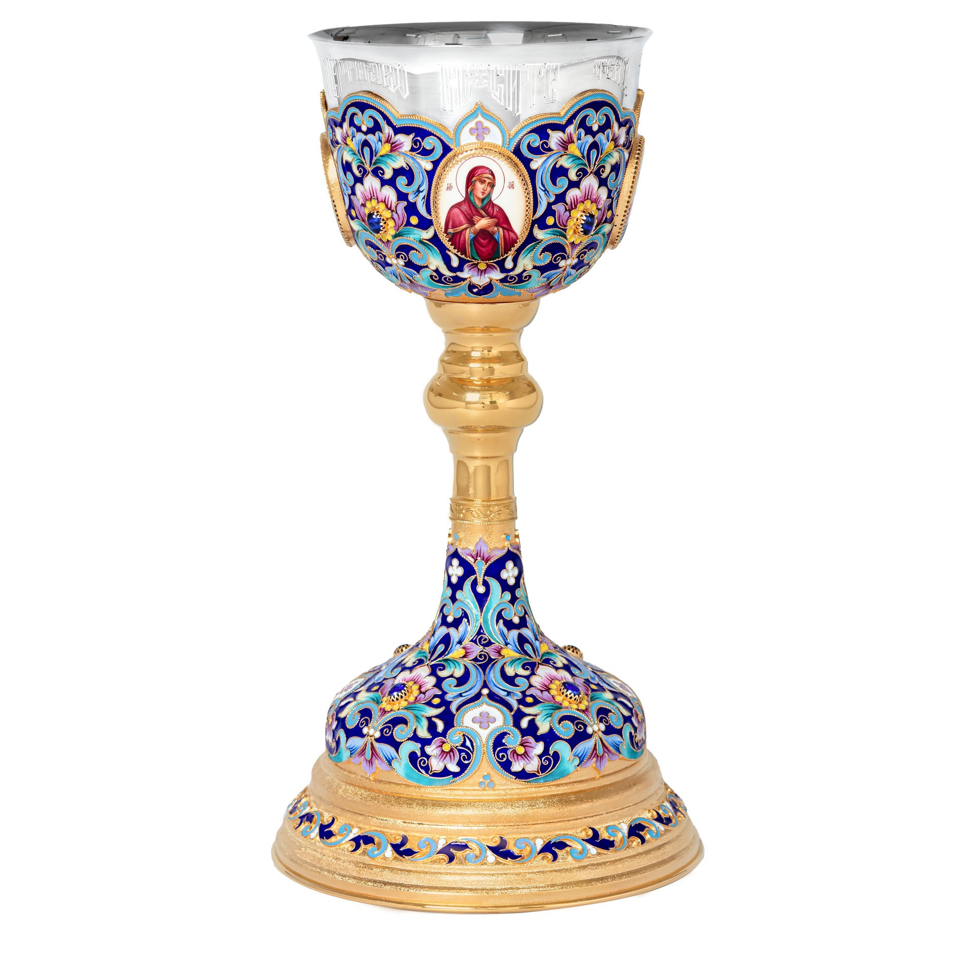 Потир 1.0л 4-финифти, филигрань, эмаль, роспись / песочные часы / золочение / серебряный стакан (УИН)