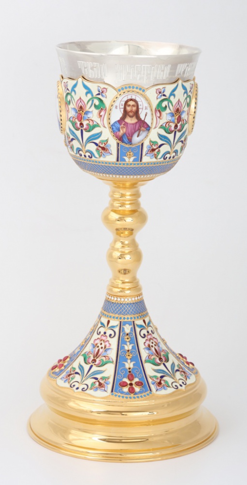 Потир 1.0л 4-финифти, филигрань, эмаль, роспись / золочение / серебряный стакан (УИН)