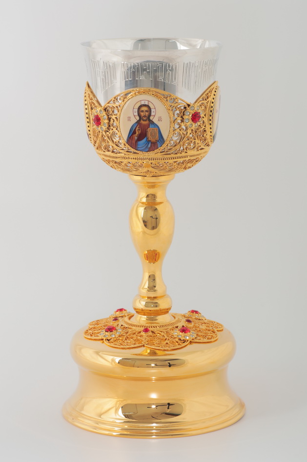Потир 1.0л 4-финифти, филигрань / золочение / серебряный стакан (УИН)