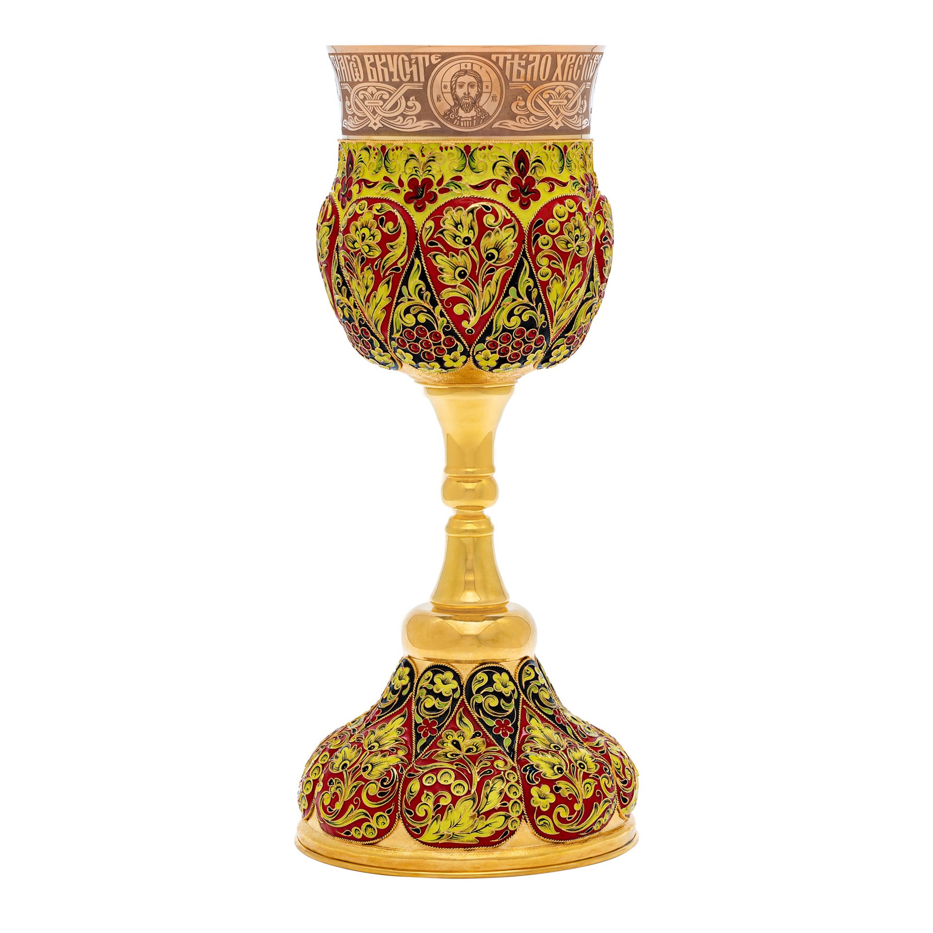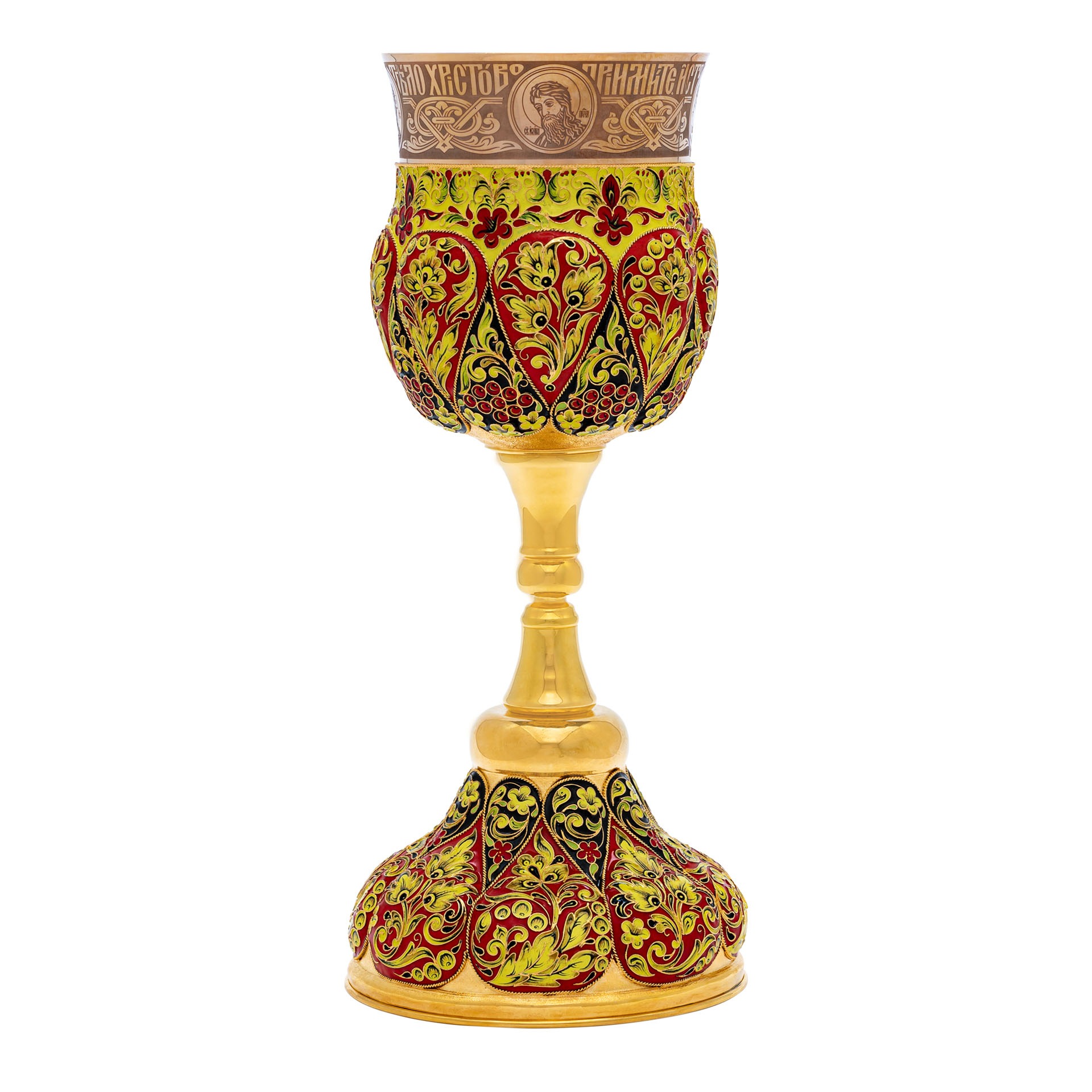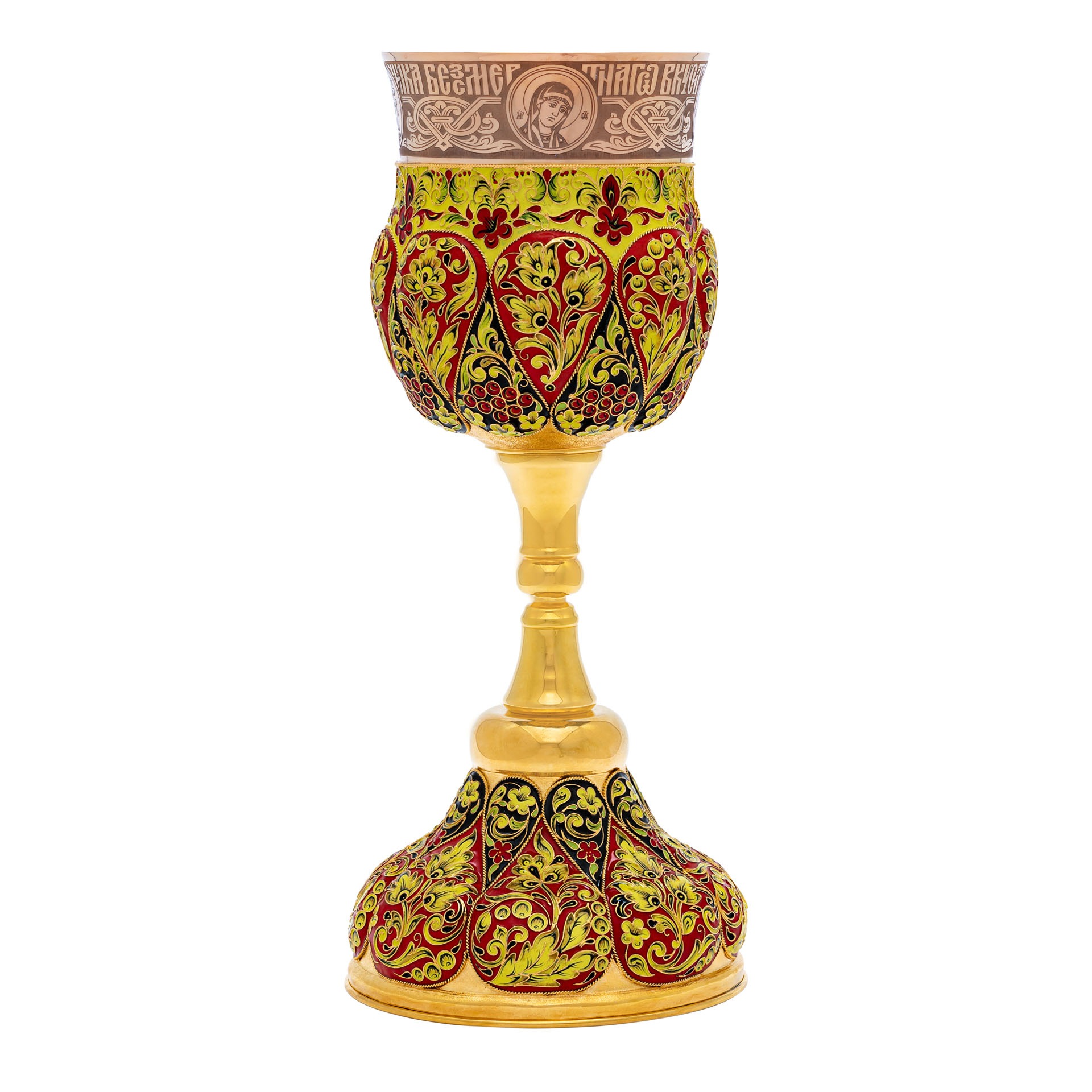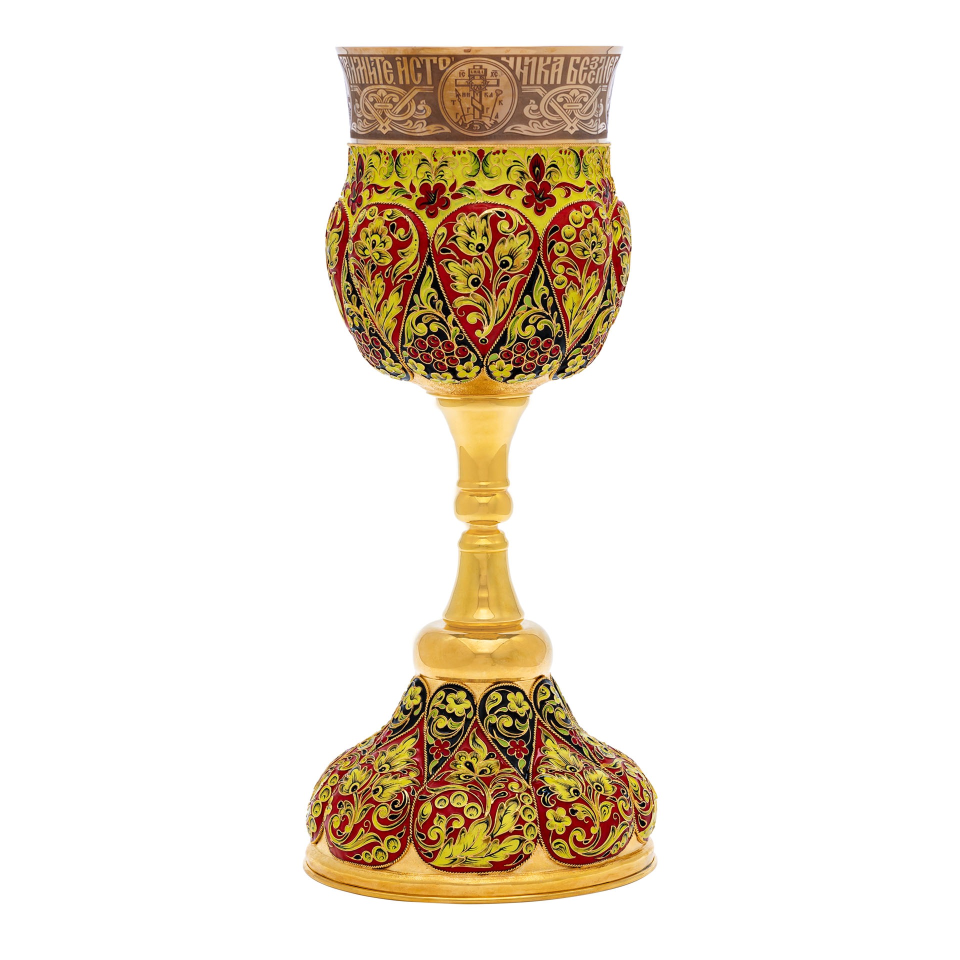 Потир 1.0л 4-гравированных лика, филигрань, эмаль, роспись, чеканка "№8"А" серебряный стакан / золочение / (УИН)