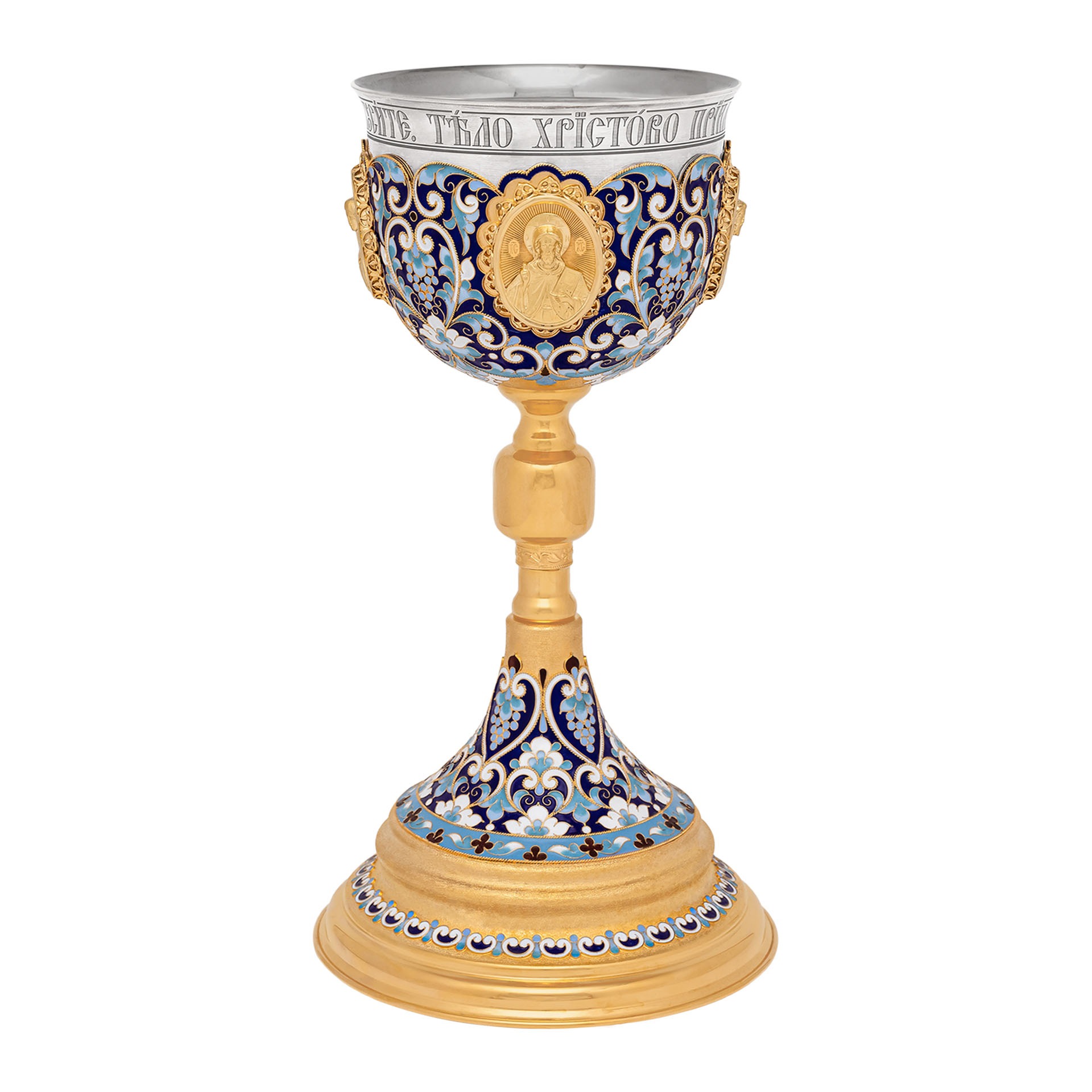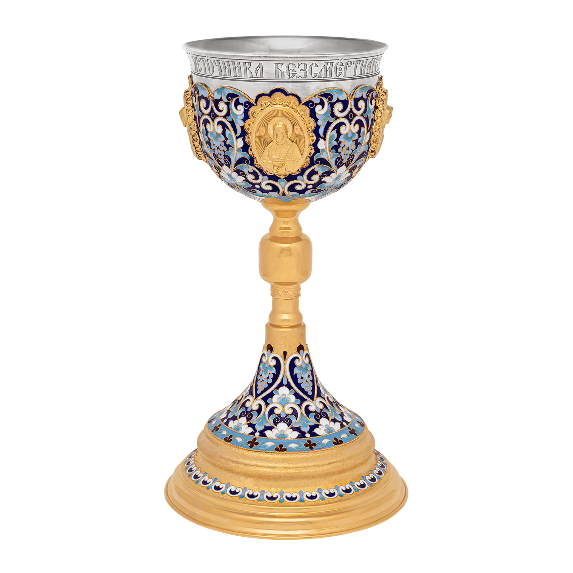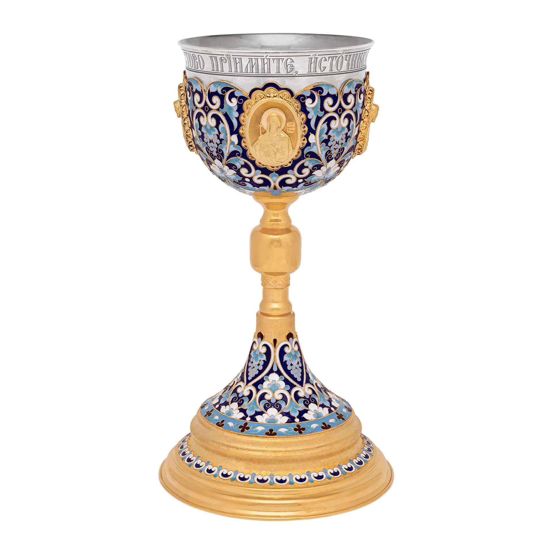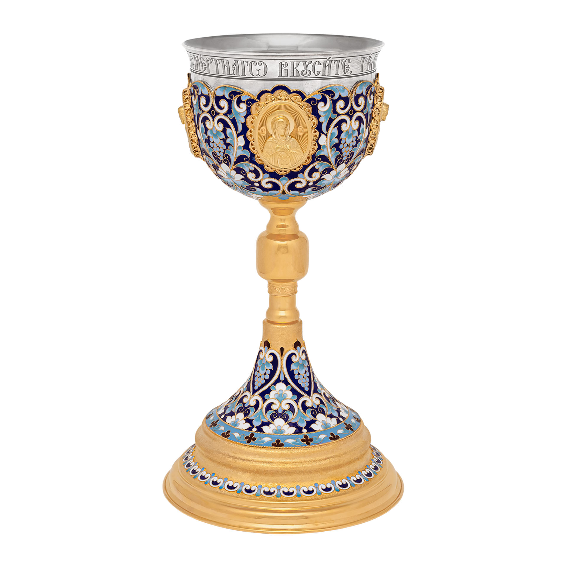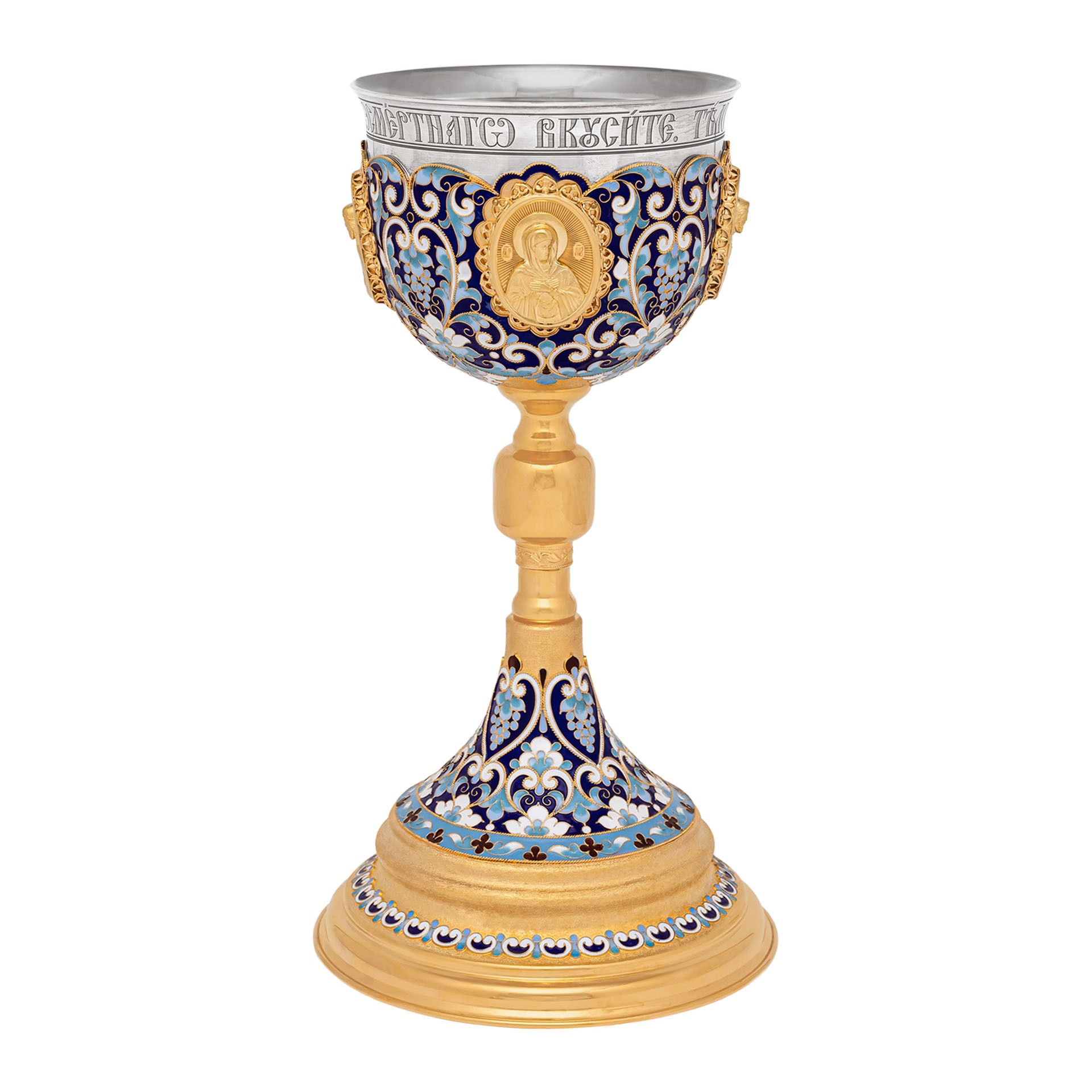 Потир 1.0л 4-литьевых лика, филигрань эмаль "№13 / 7" / золочение / серебряный стакан (УИН)