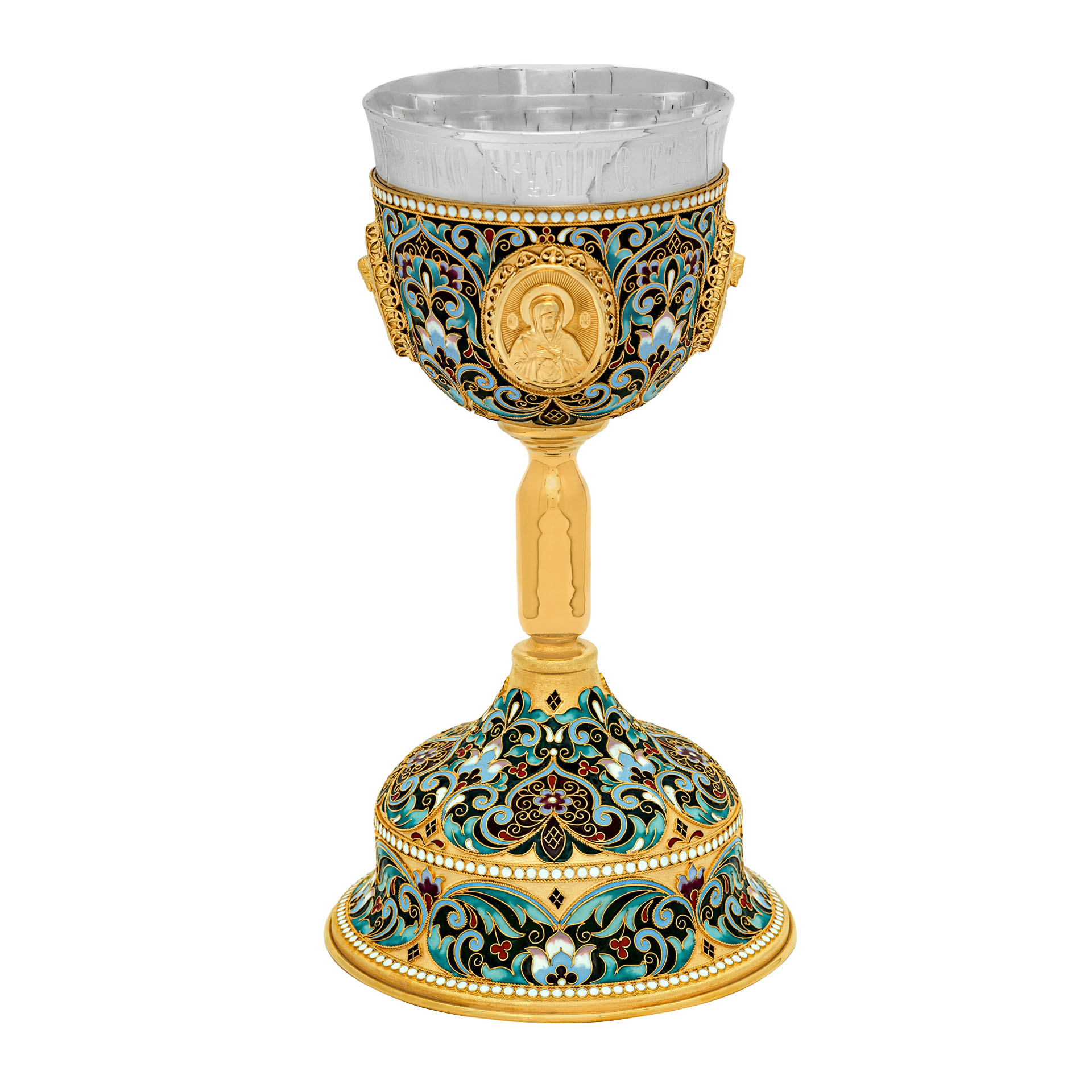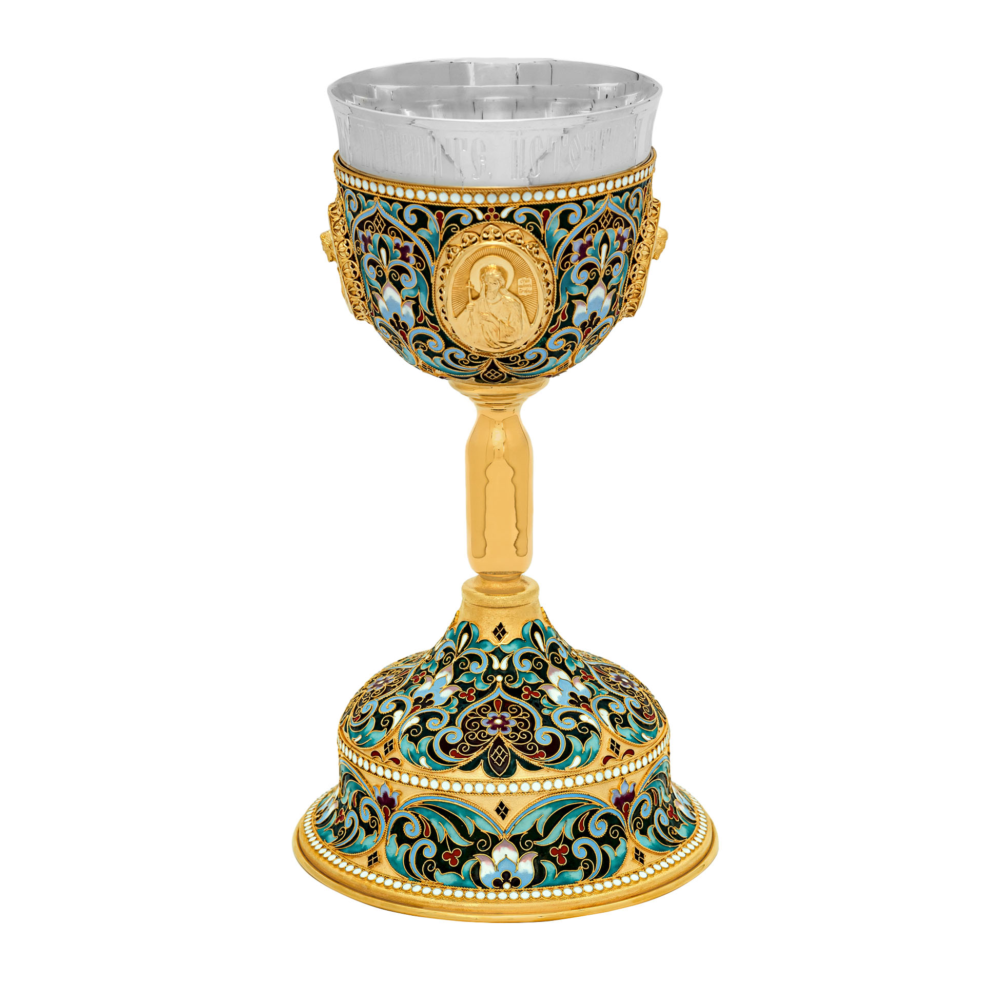 Потир 1.0л 4-литьевых лика, филигрань, эмаль "№3" / золочение / серебряный стакан (УИН)