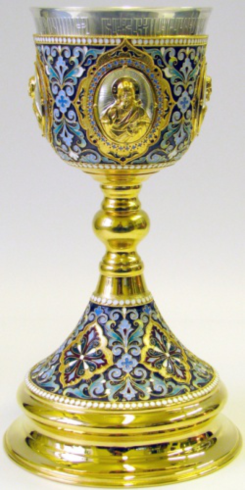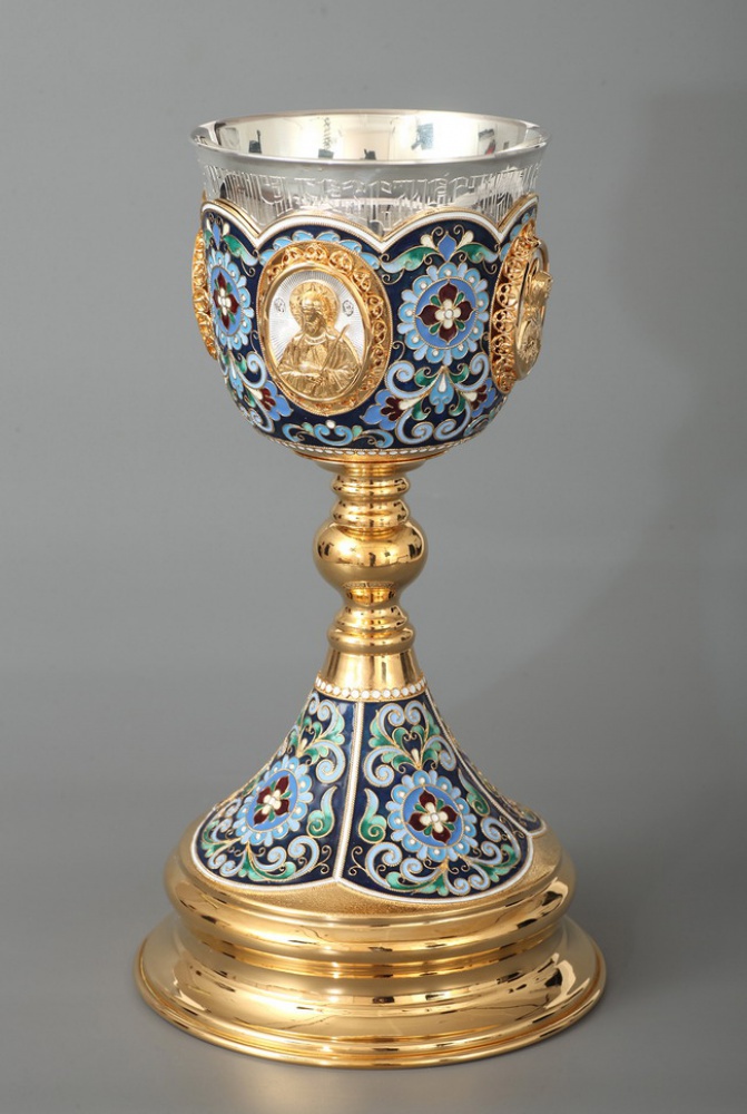 Потир 1.0л 4-литьевых лика, филигрань, эмаль / золочение, серебрение / серебряный стакан (УИН)