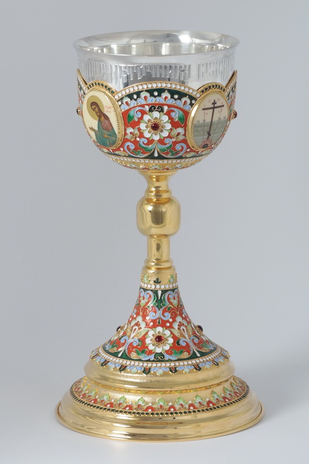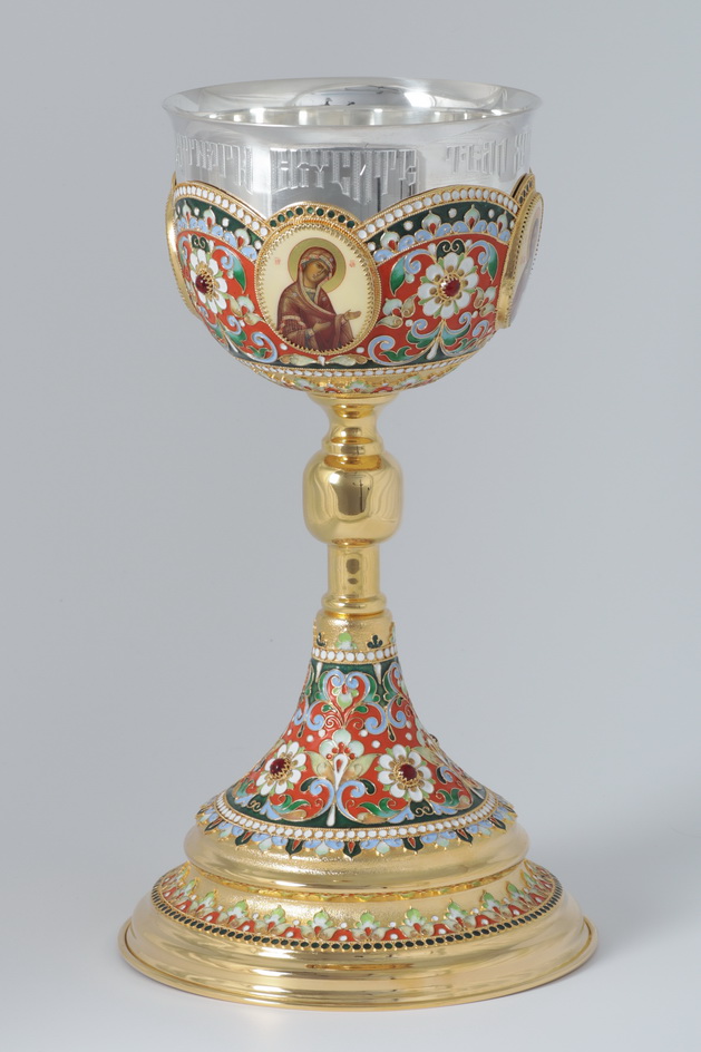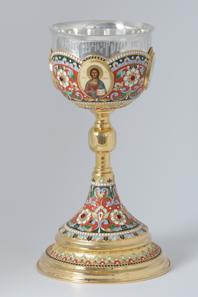 Потир 1.0л 4-живописи, филигрань, эмаль "№13 / 7" / золочение / серебряный стакан (УИН)