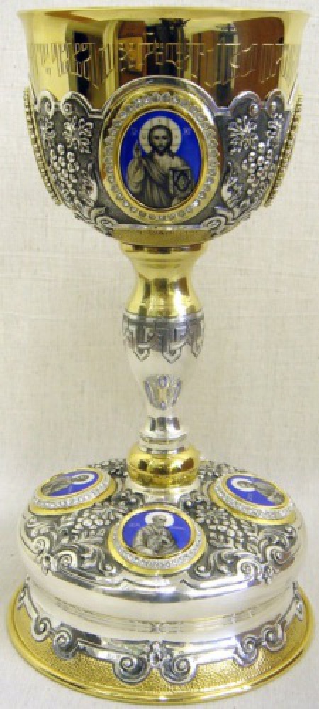 Потир 1.0л 8-финифтей, чеканка / поддон старого образца / золочение / серебро (УИН)