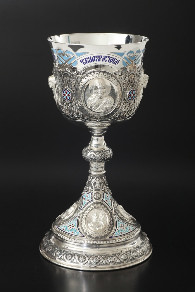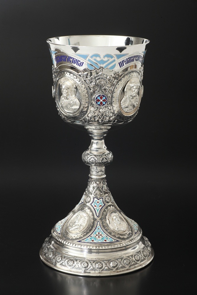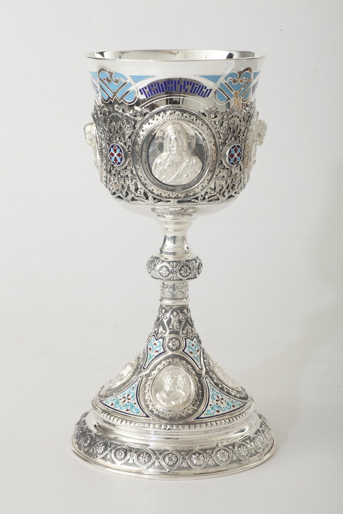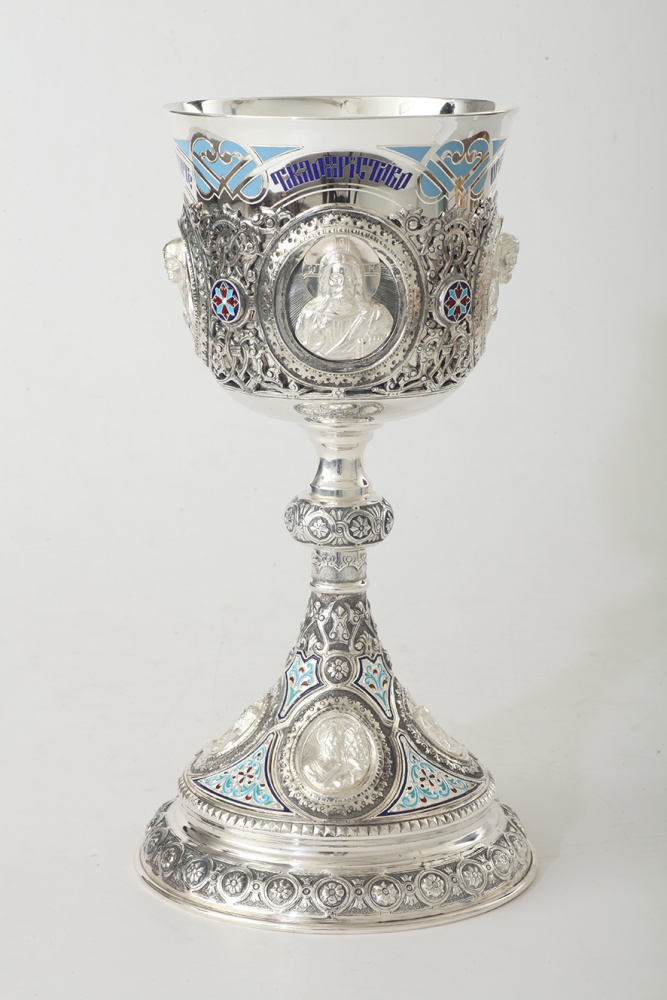 Потир 1.0л 8-литьевых лика, чеканка, филигрань, эмаль серебро (УИН)