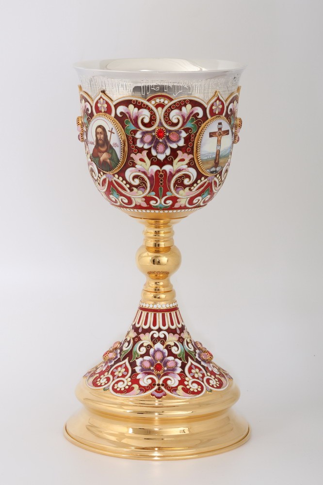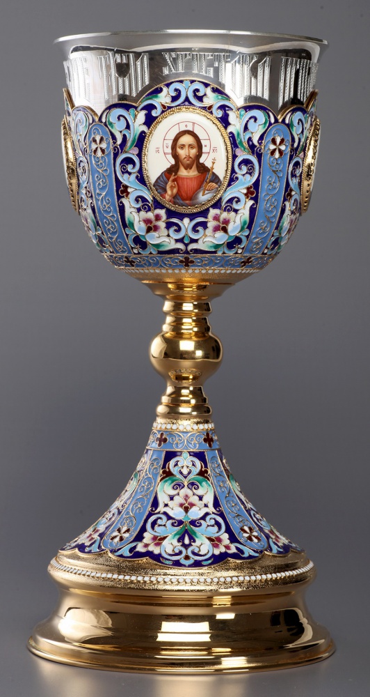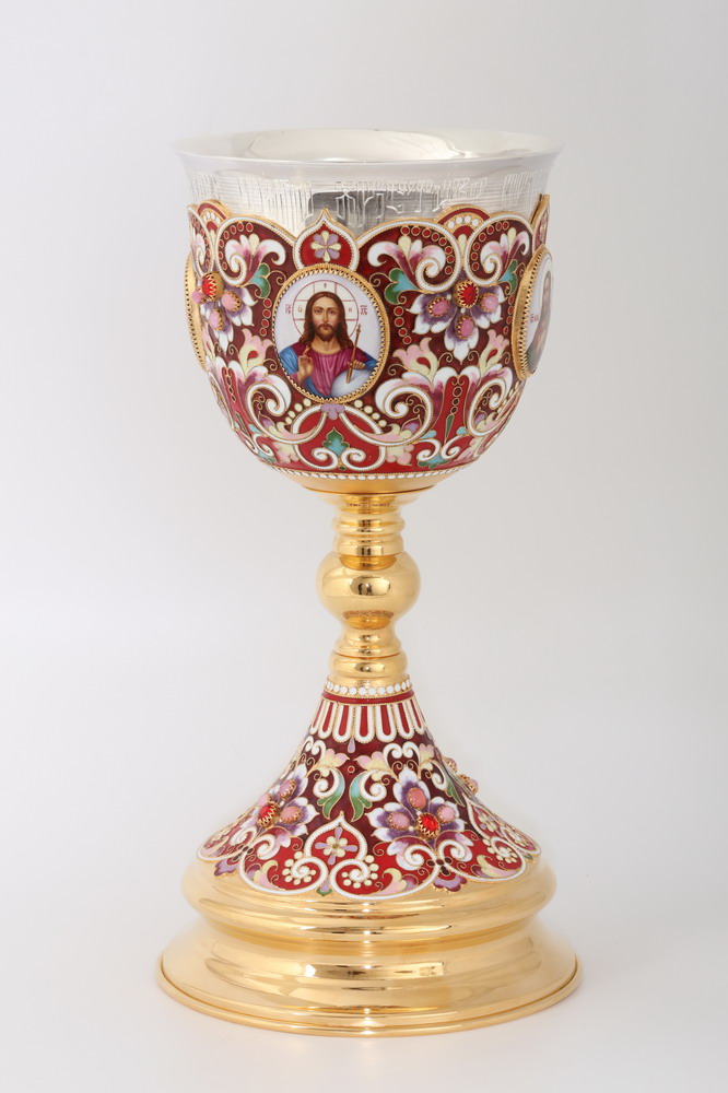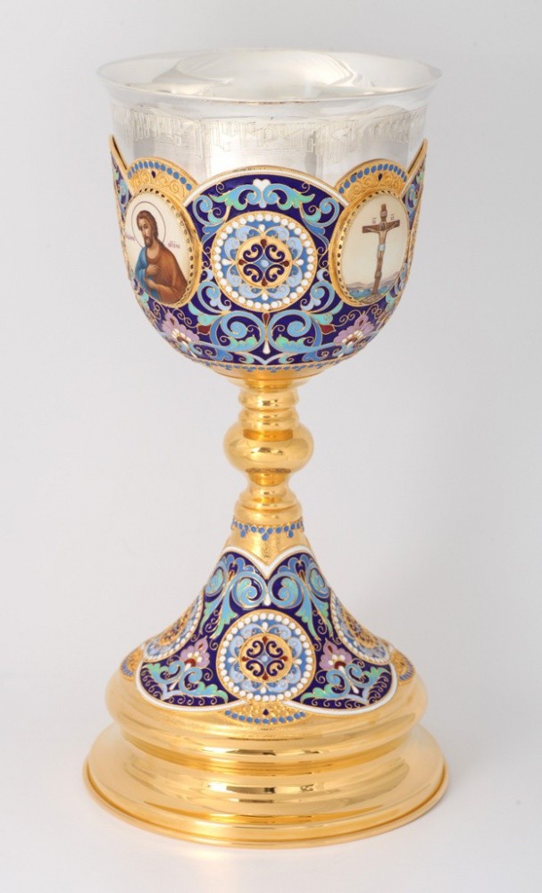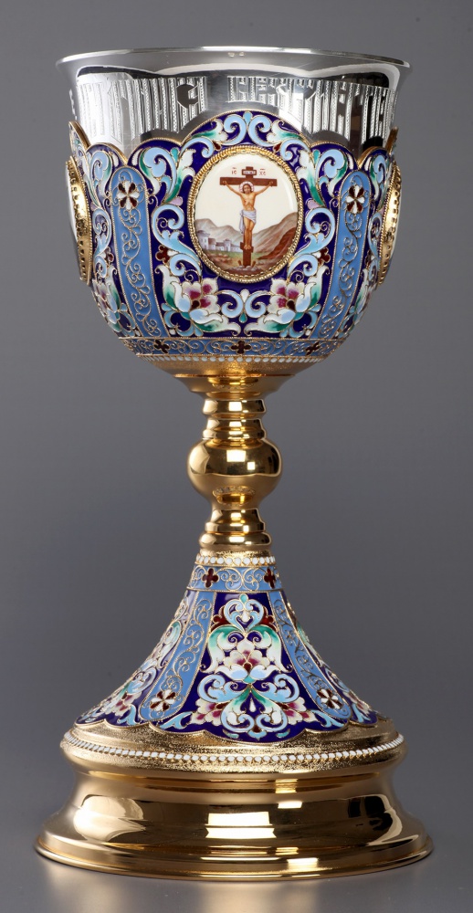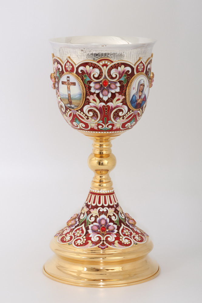 Потир 1.5л 4-финифти, филигрань, эмаль / золочение / серебряный стакан (УИН)