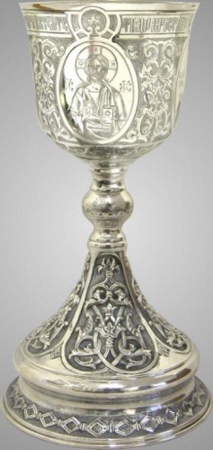 Потир 1.5л ручная гравировка с 4мя-ликами, чеканка, серебро (УИН)