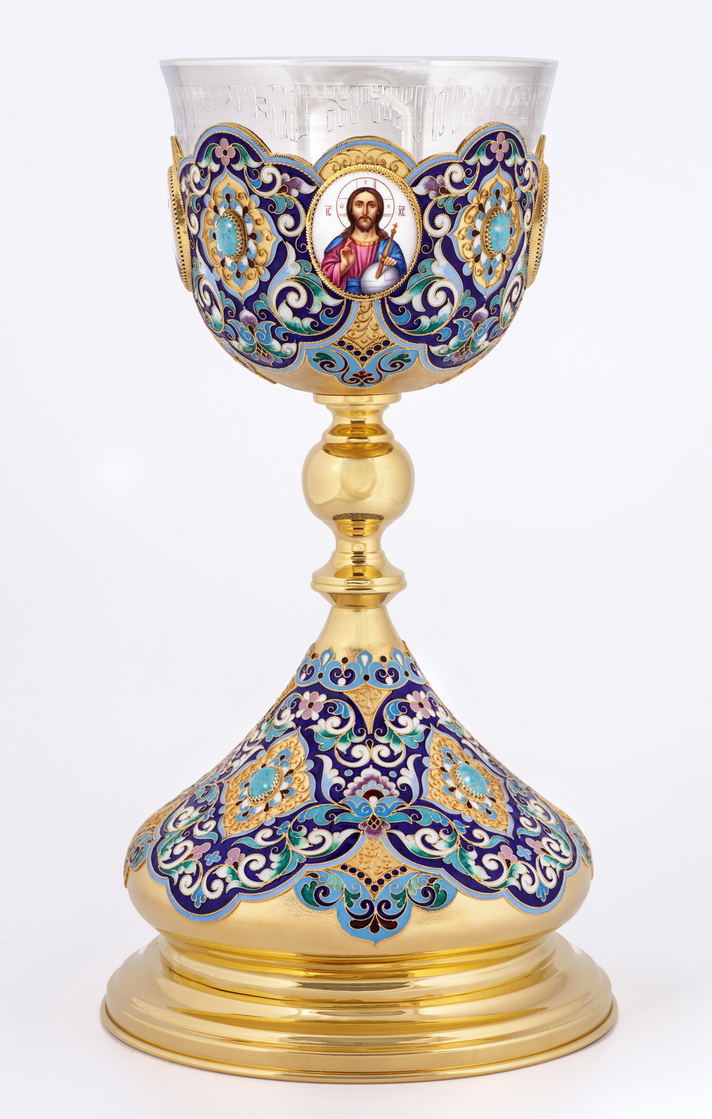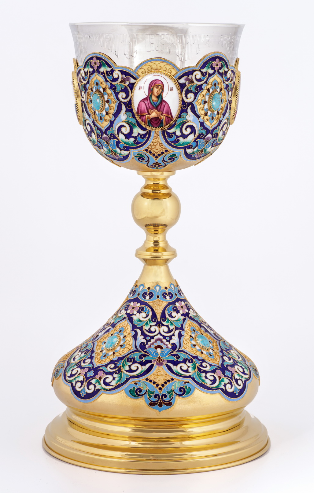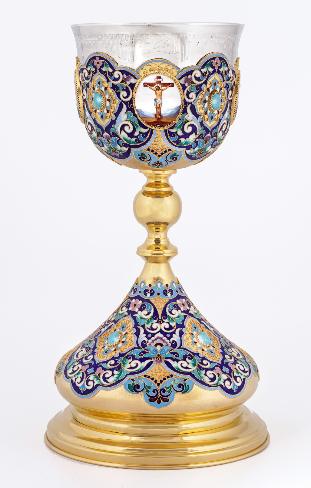 Потир 1.75л 4-финифти, филигрань, эмаль "№16" / золочение / серебряный стакан (УИН)