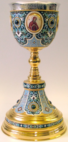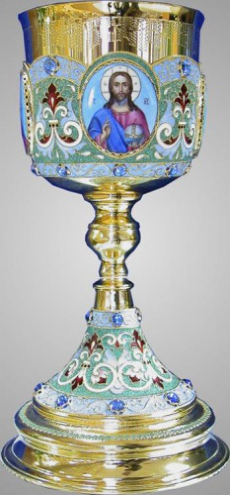 Потир 2.0л 4-финифти, филигрань, эмаль / поддон конус 2,0л / золочение / серебряный стакан (УИН)