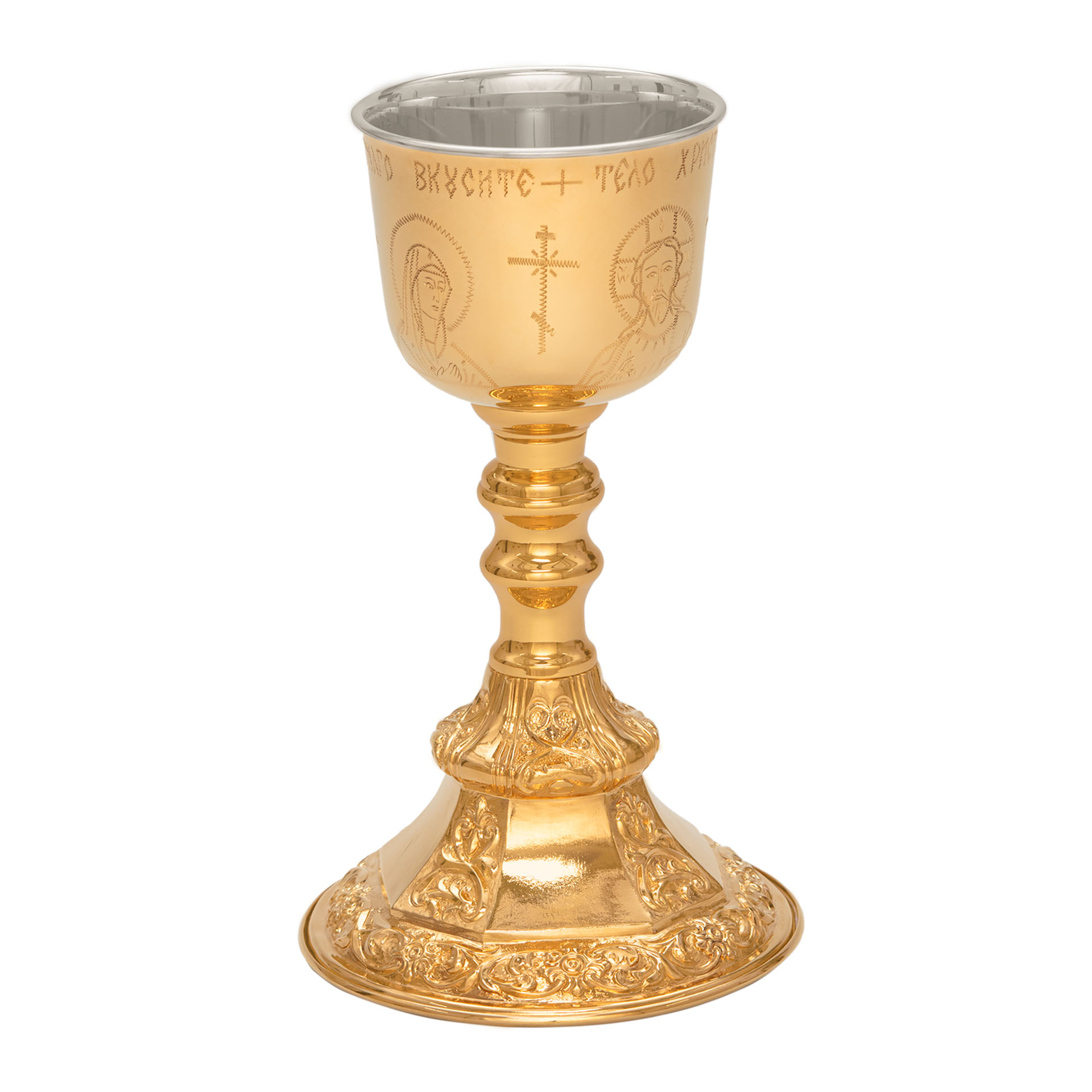 Потир-чаша 0.4 с вкладышем (нерж. сталь) г / пластика ручная гравировка золочение