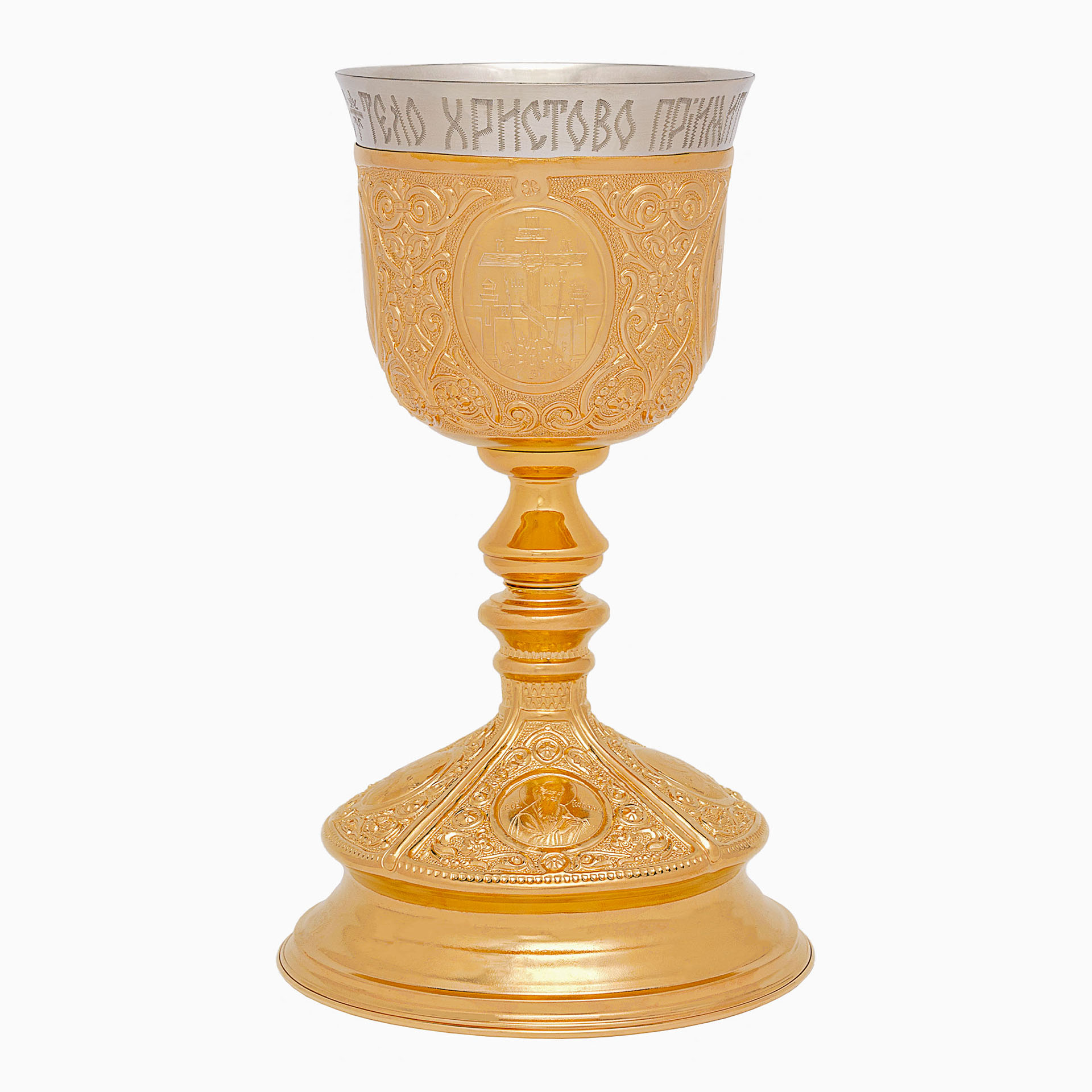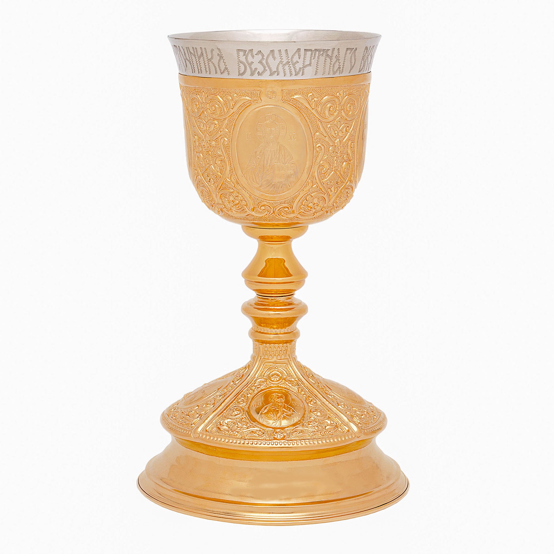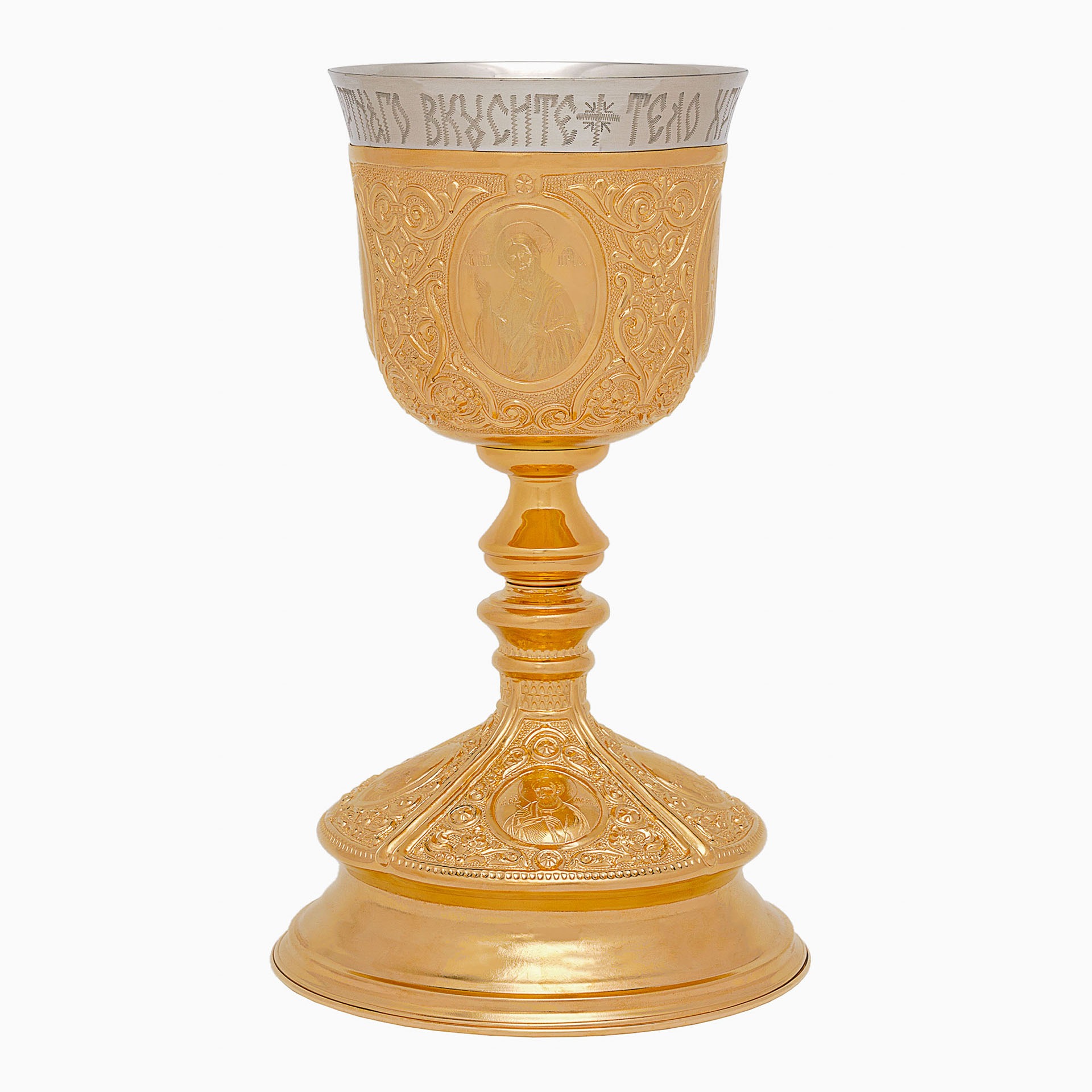 Потир-чаша 1.0 №4 с вкладышем (мельхиор) гальванопластика ручная гравировка золочение