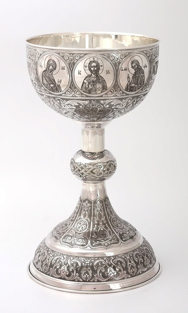 Потир-чаша 1.5л ручная гравировка с 4мя-ликами серебро (УИН)