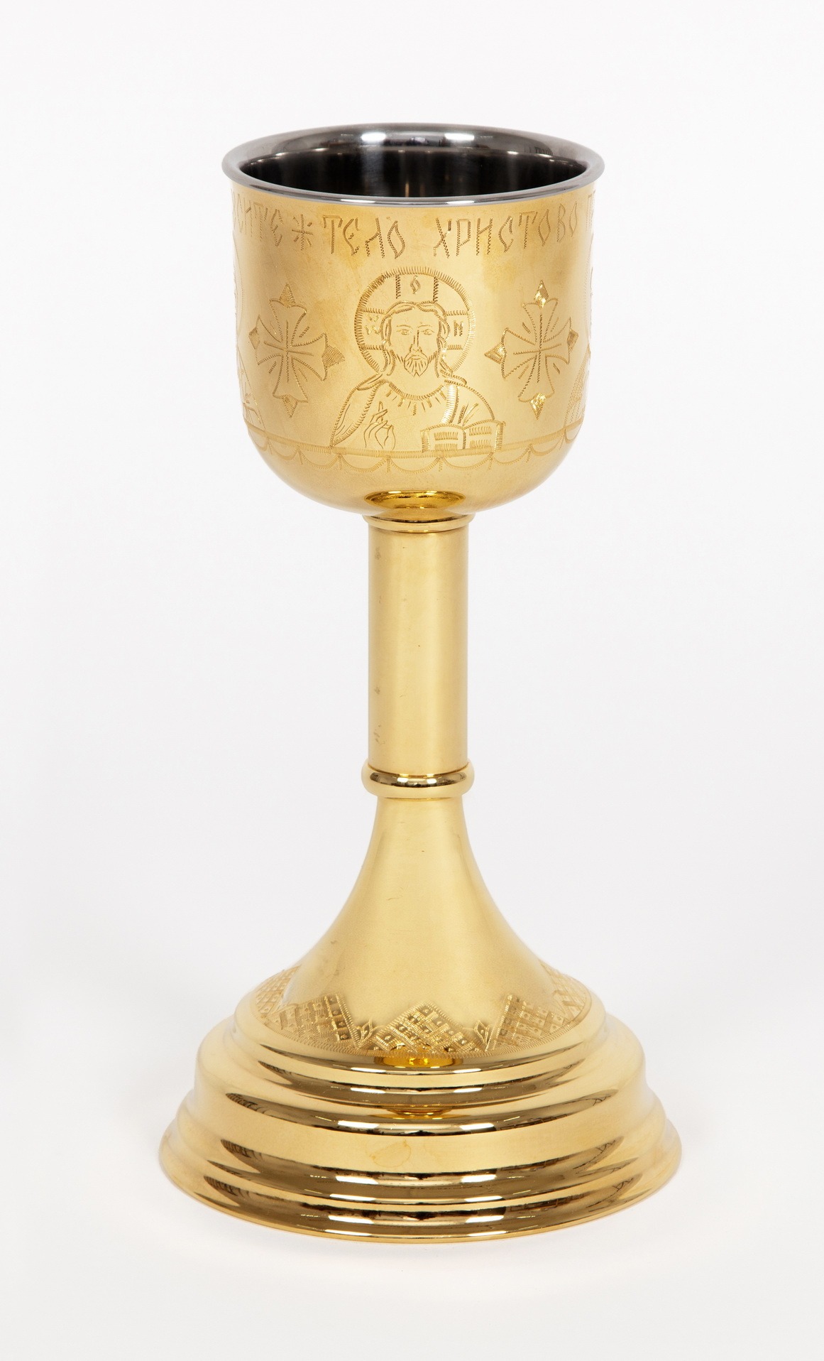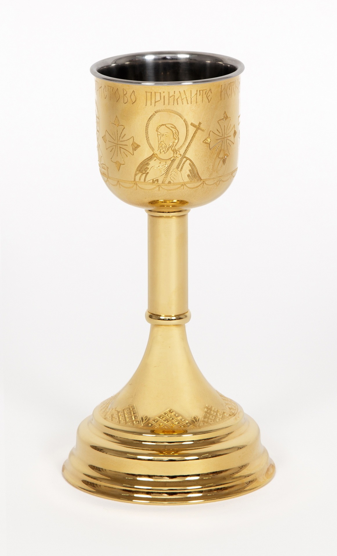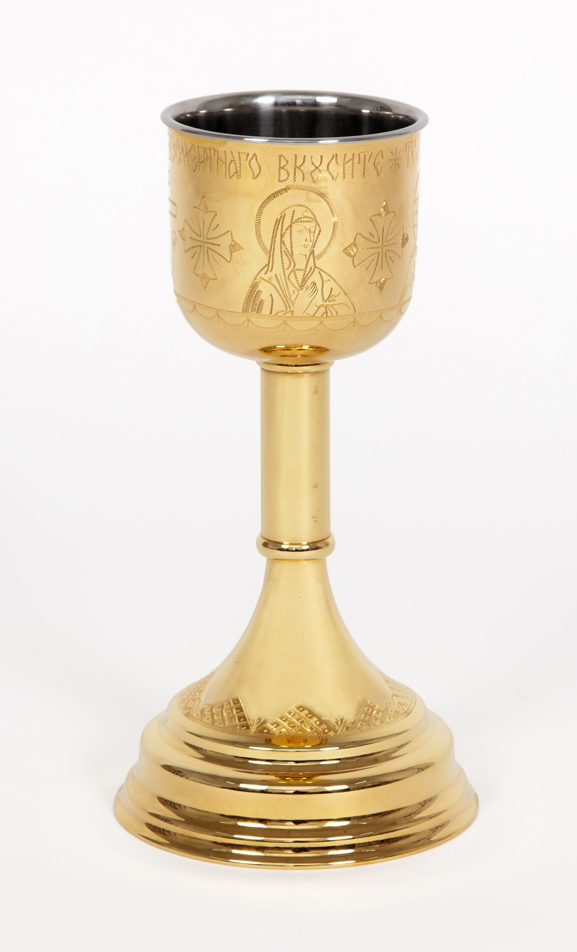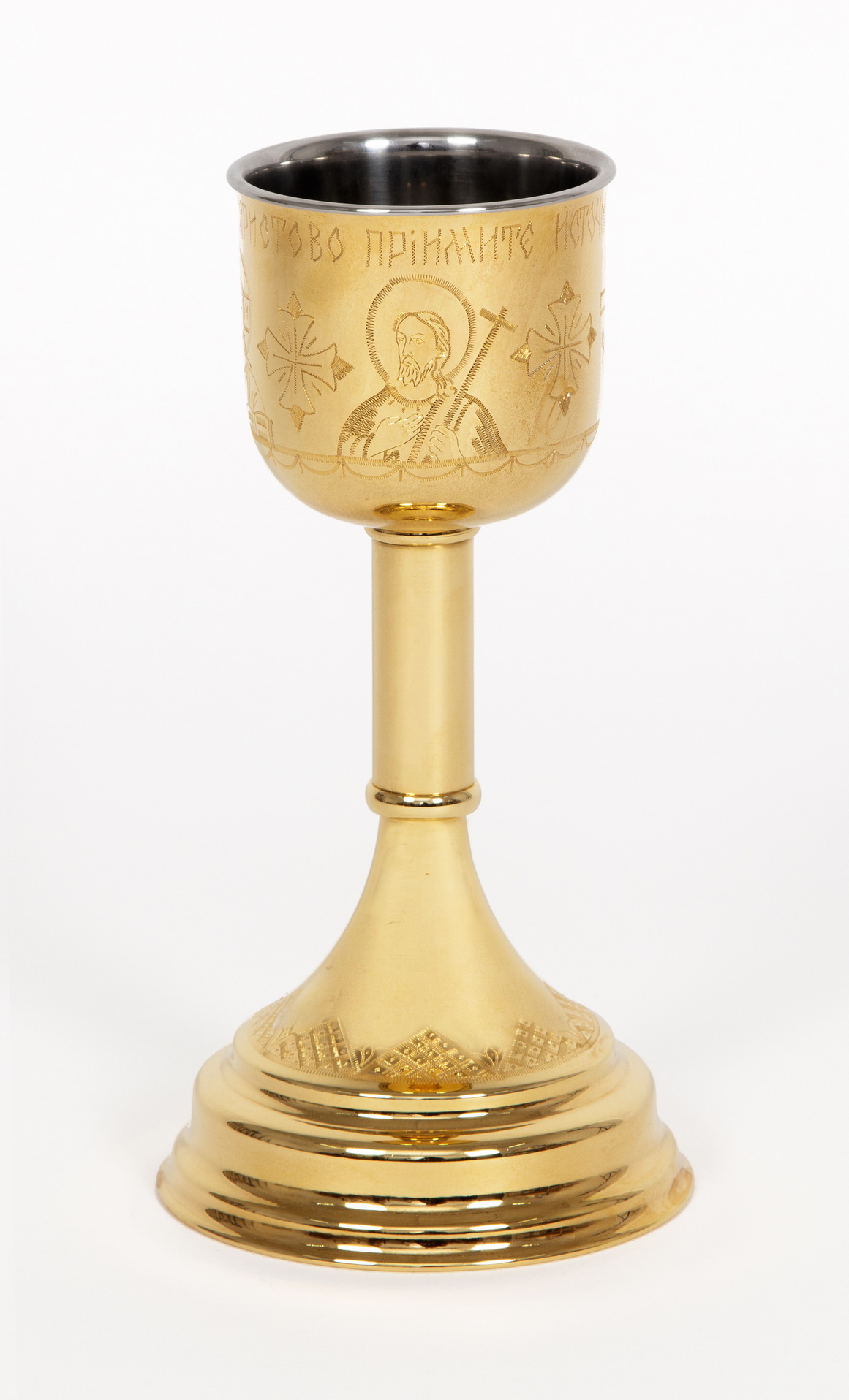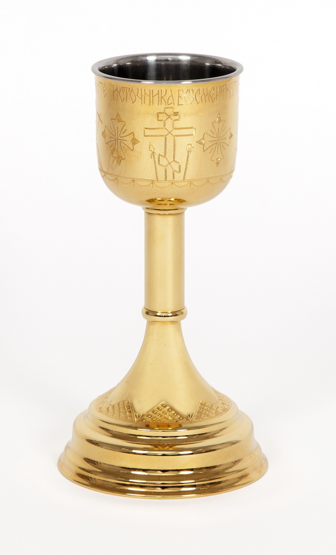 Потир-чаша №2 0.5л конусной с вкладышем (нерж. сталь) ручная гравировка золочение