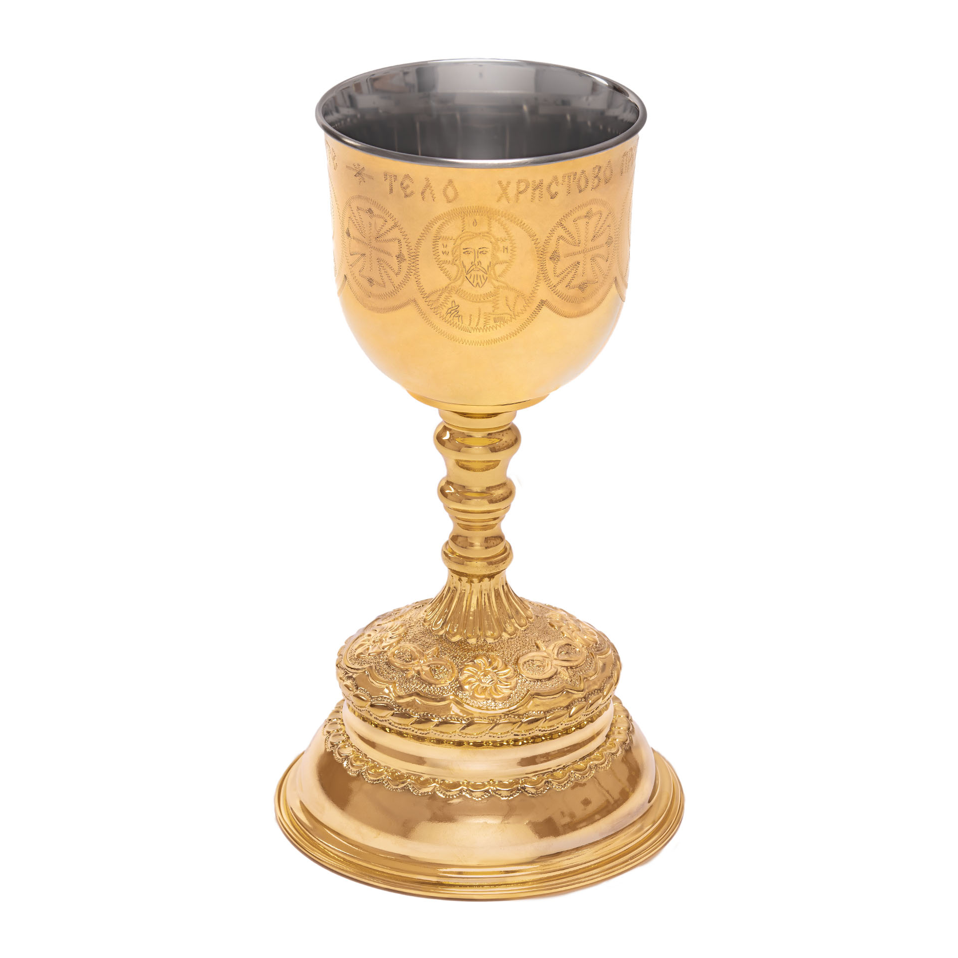 Потир-чаша №2 1,0л с вкладышем (нерж. сталь) г / пластика ручная гравировка золочение