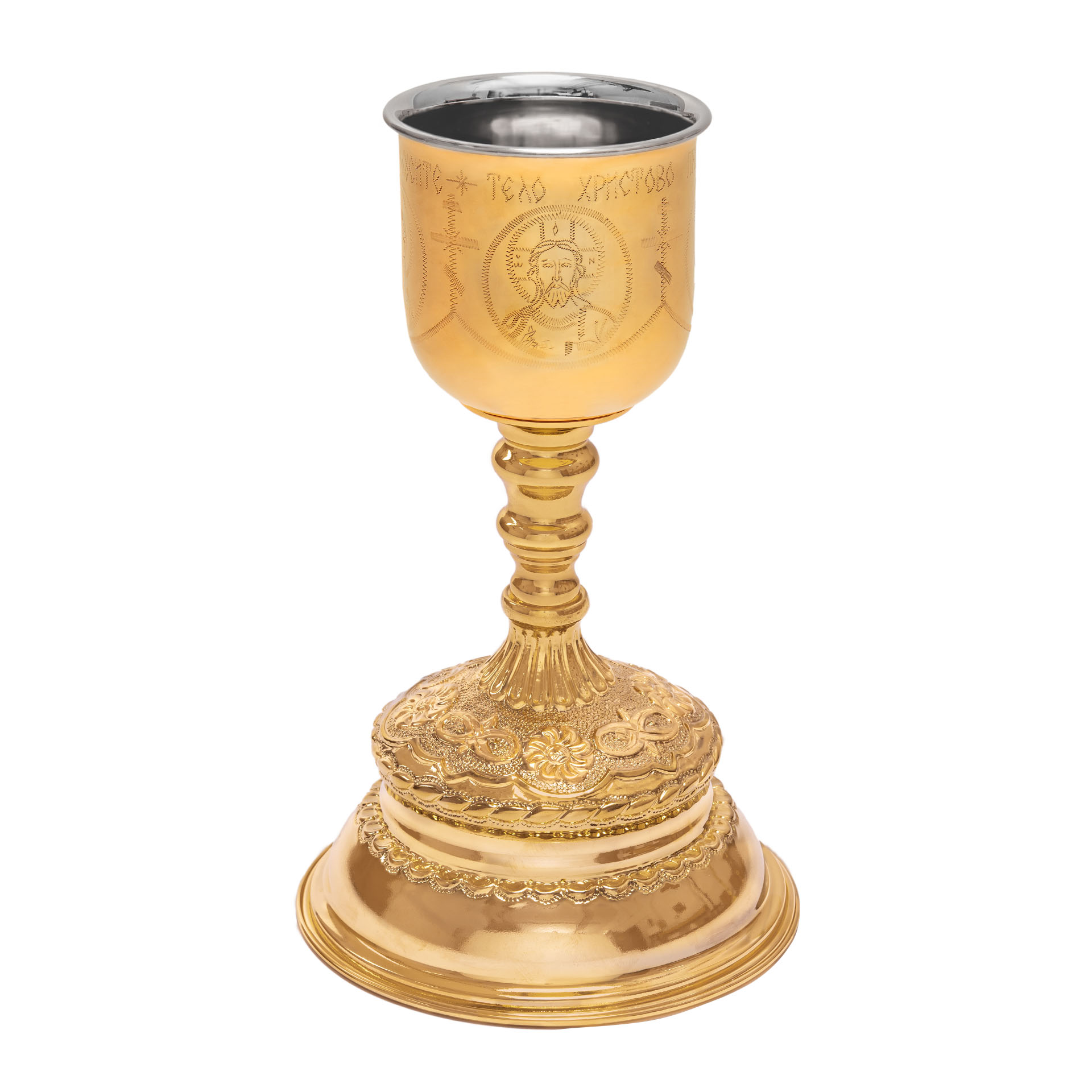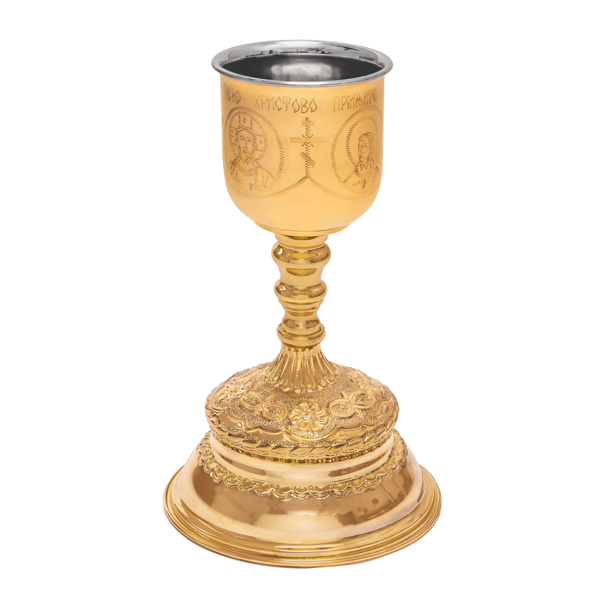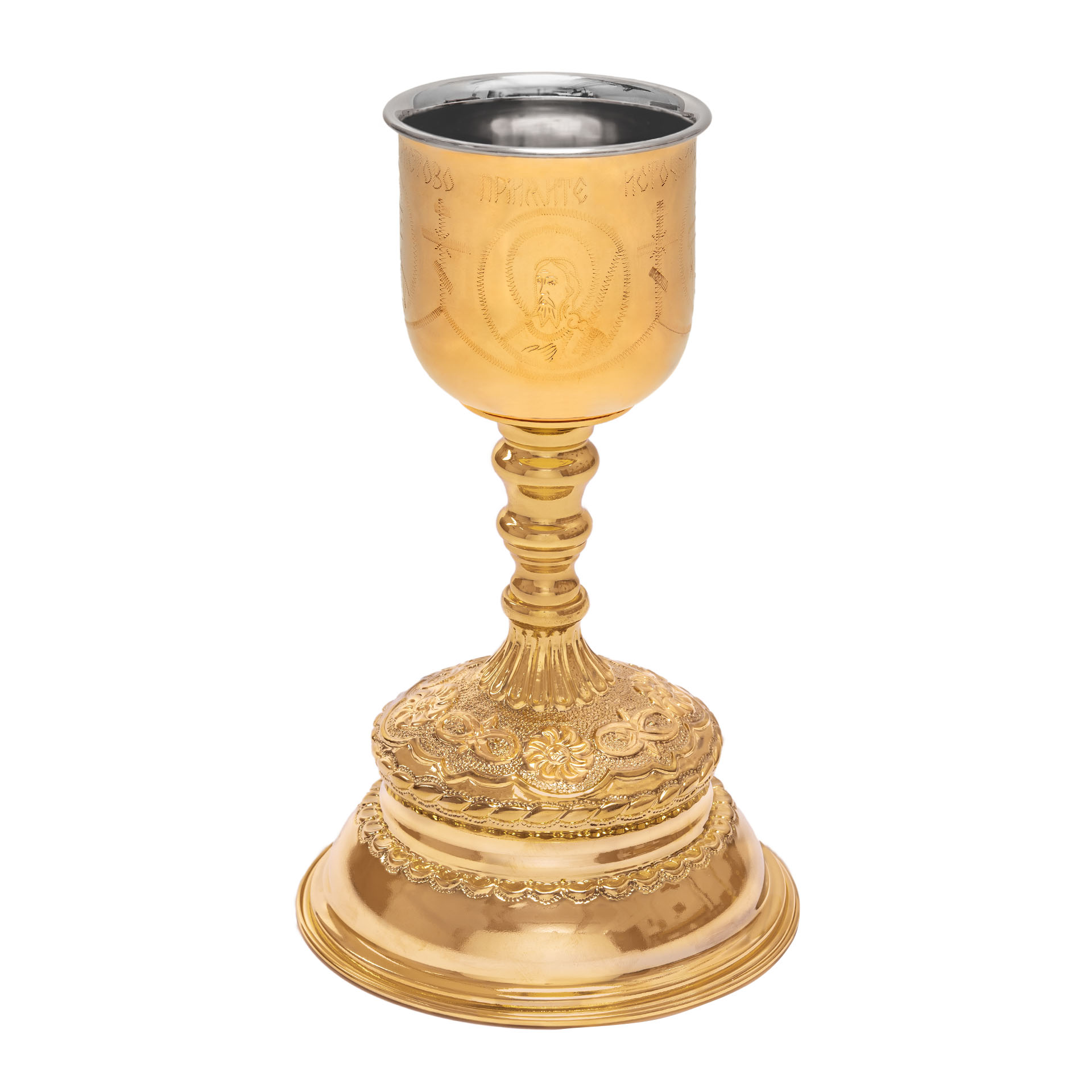 Потир-чаша №5 0.5л с вкладышем (нерж. сталь) г / пластика ручная гравировка золочение