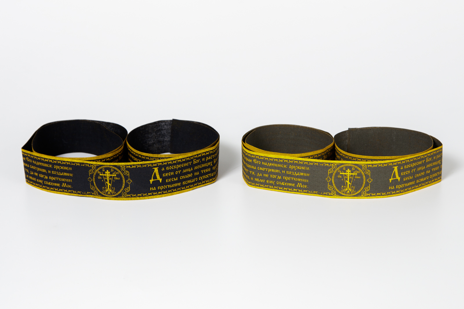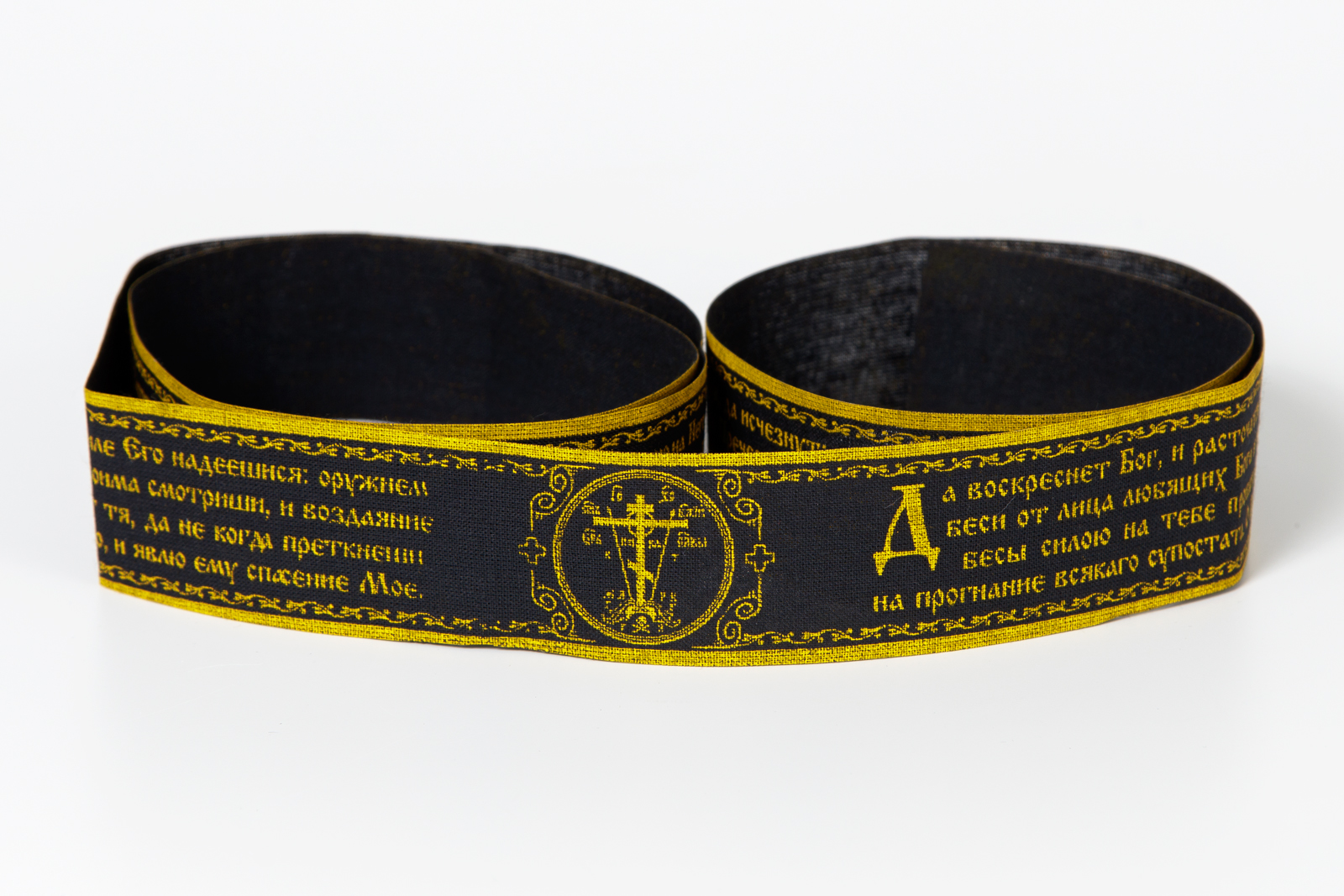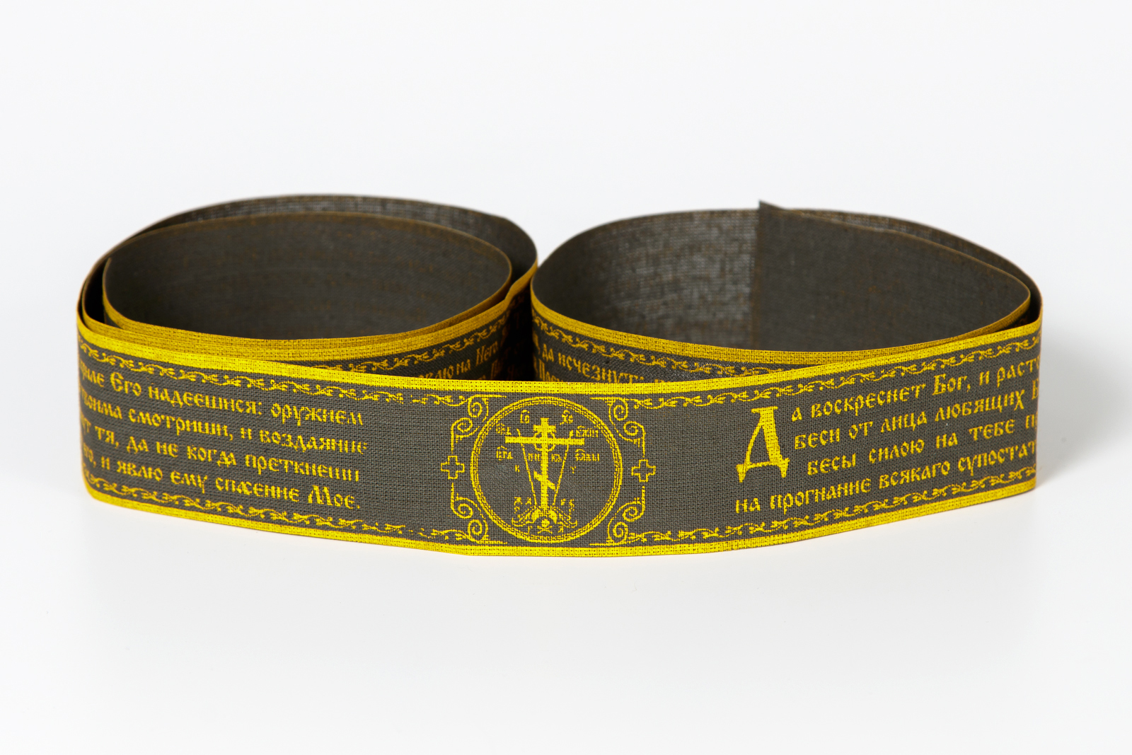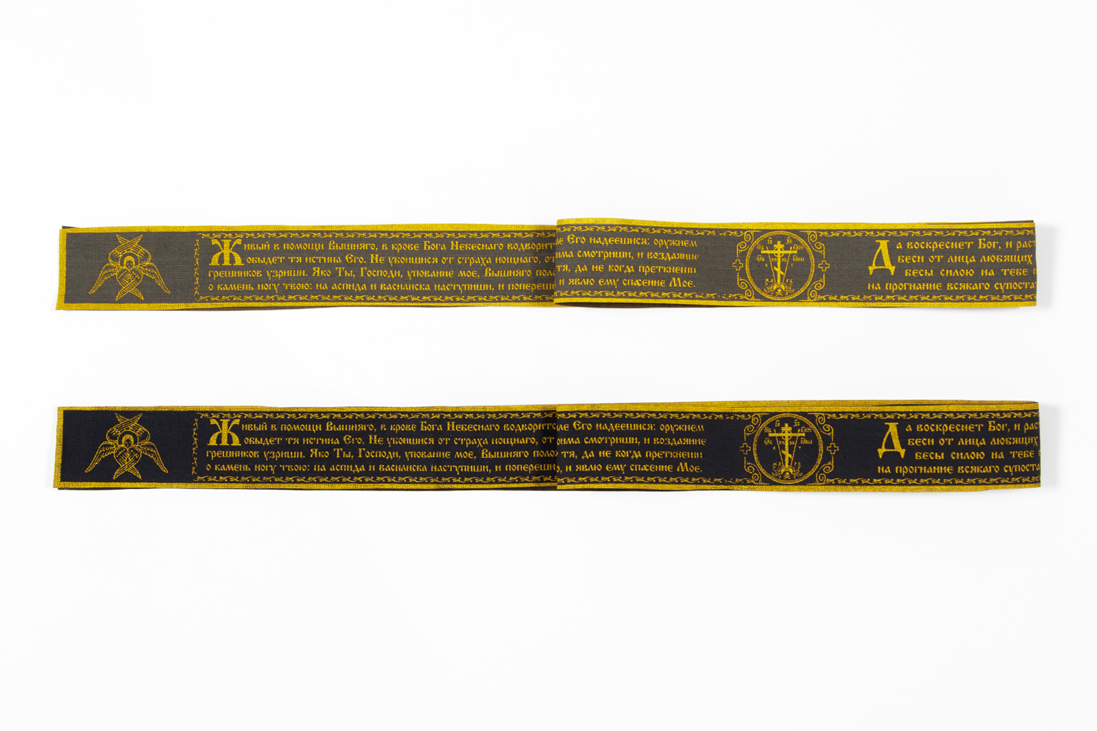Пояс выполнен из хлопчатобумажной ткани, с 90 Псалмом ("Живый в помощи Вышняго...")