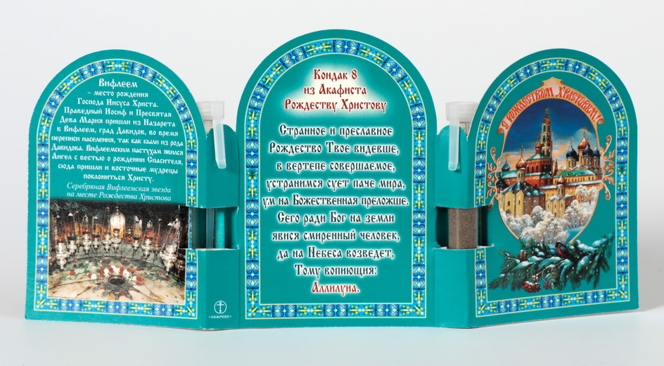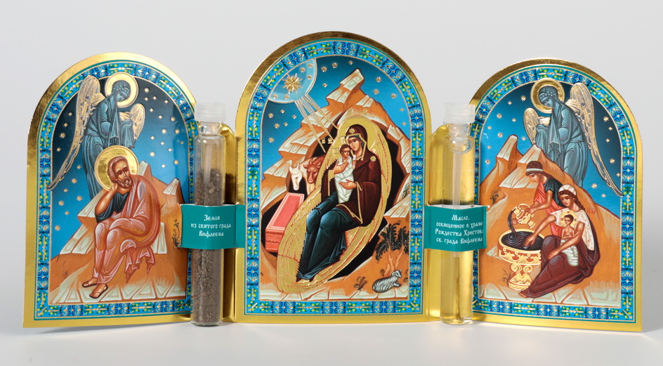 Праздничная продукция Складень тройной церковный с освященными маслом и землей Рождество Христово 10