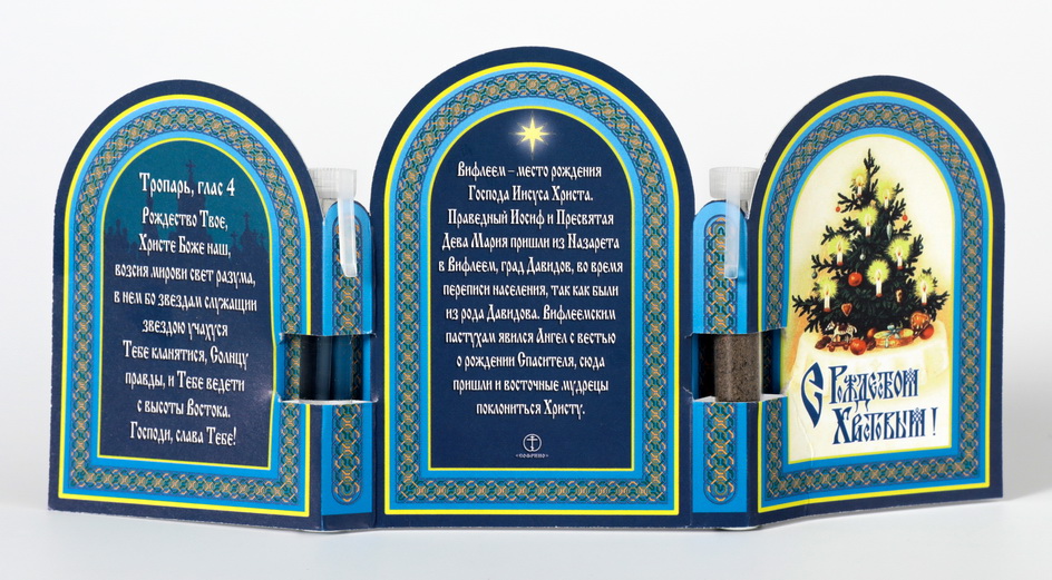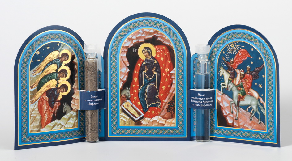 Праздничная продукция Складень тройной церковный с освященными маслом и землей Рождество Христово 7