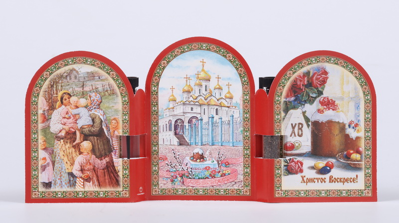 Праздничная продукция Складень тройной церковный с освященными маслом и землей Воскресение Христово 17