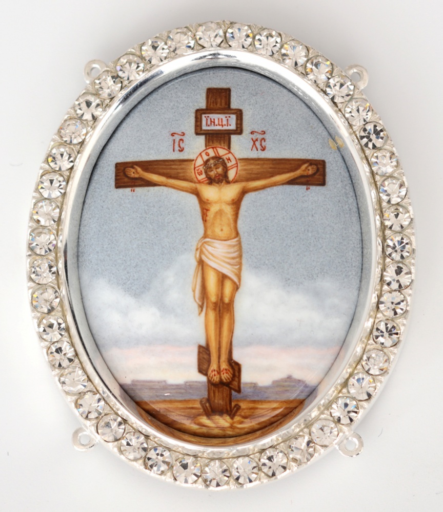 Рамка на митру финифть №16 / овал с короной / серебро (УИН)